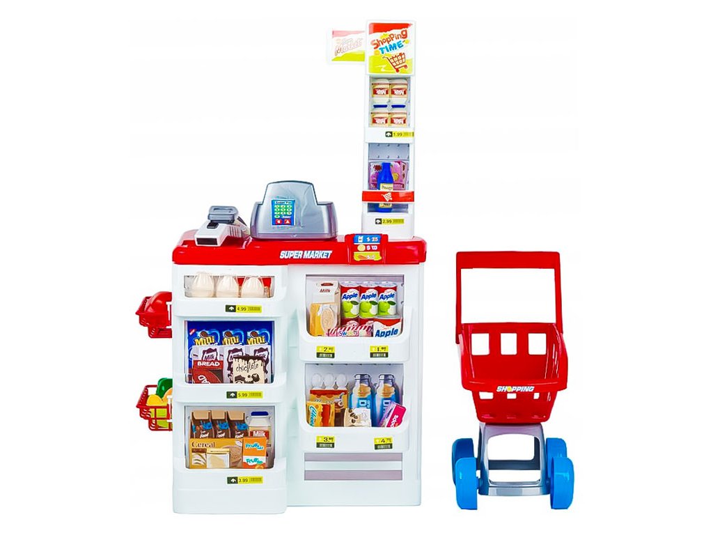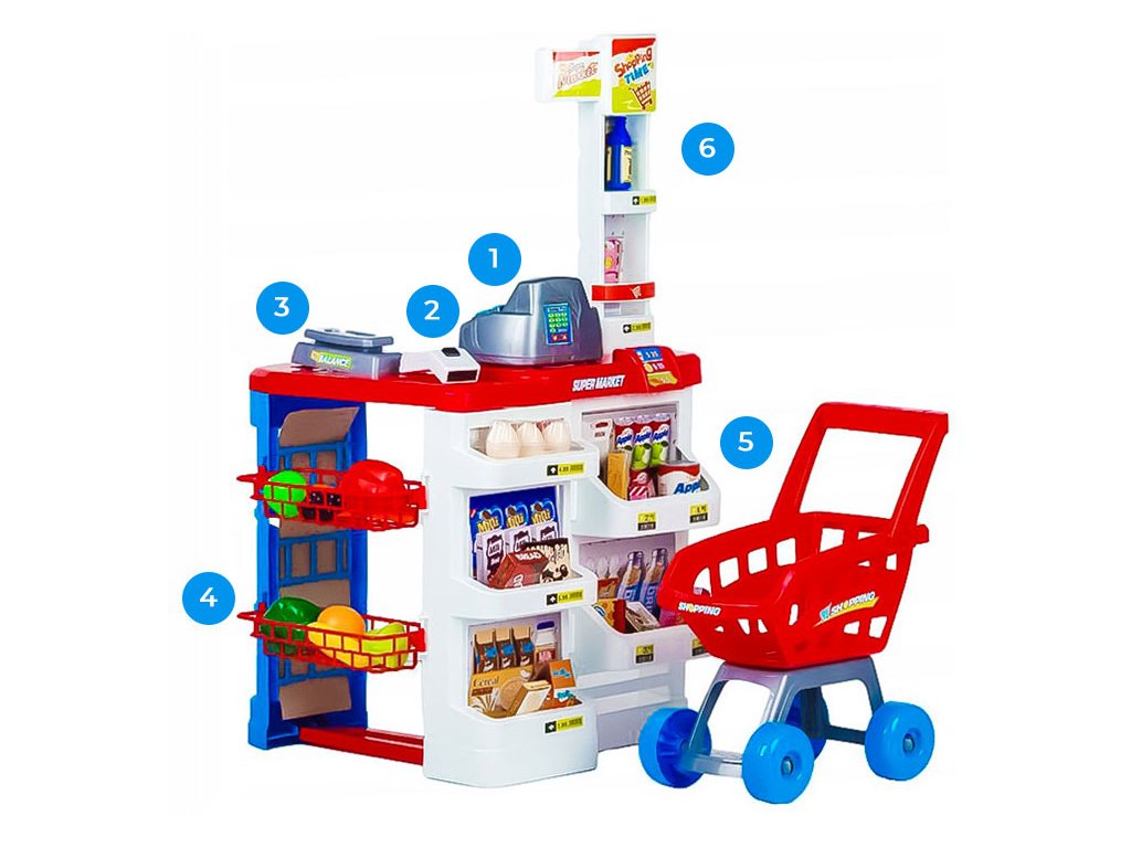 Vítejte v kouzelném svět vzdělávací zábavy . Dětská hračka, která je obchod v supermarketu s vozíkem, kde se batolata ocitají ve fascinující roli malých nakupujících a prodavačů. Tato kompletní sada podporuje rozvoj sociálních, matematických a tvůrčích dovedností a nabízí dětem nezapomenutelný zážitek dobrodružství ve světě nakupování.