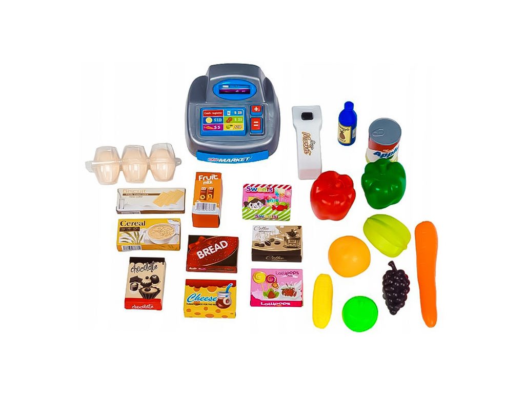 Sada obsahuje také fiskální pokladna, která dětem umožňuje poznat základy manipulace s hotovostí a plateb . Kromě toho, skener výrobků dodává autenticitu která svítí červeným světlem napodobujícím laserový paprsek a vydává také charakteristický zvuk, který potvrzuje, že byl kód výrobku přečten.