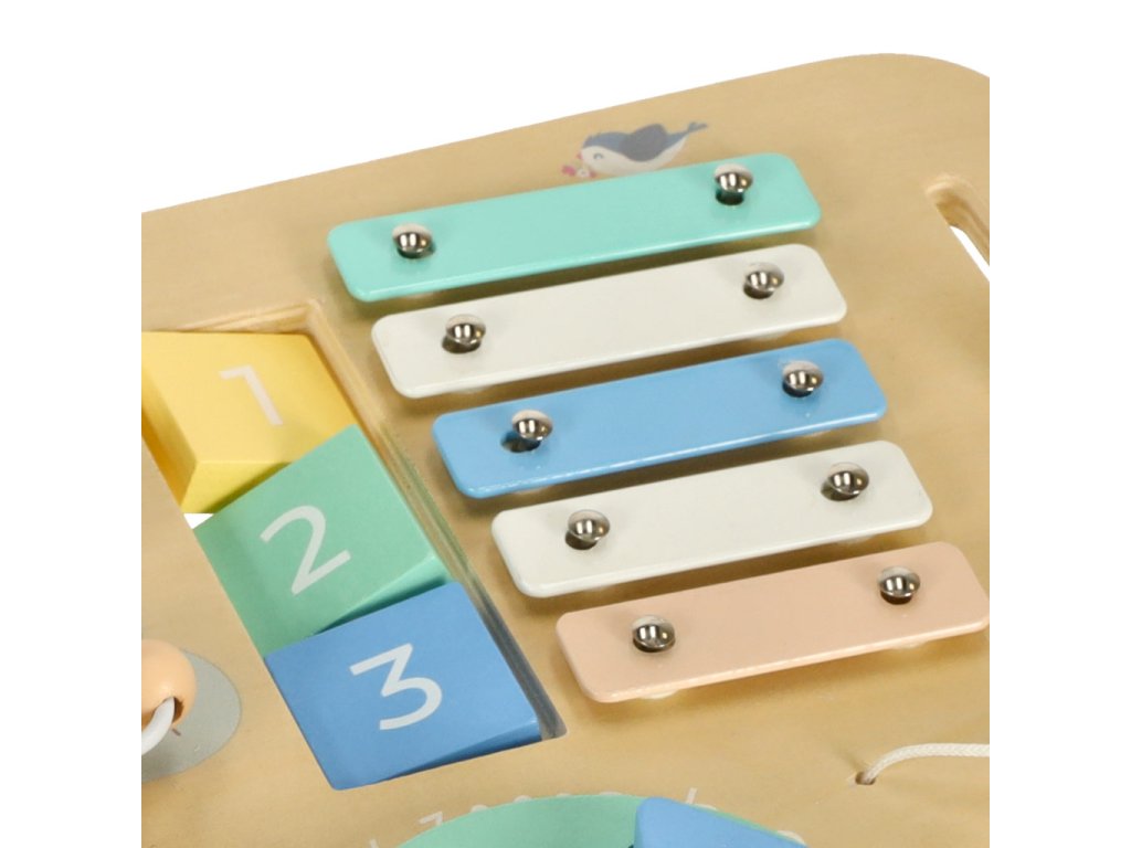 Je vyrobena ze dřeva se zaoblenými hranami, které zaručují bezpečnost při hře. Všechny prvky jsou natřeny netoxickými barvami, takže jsou pro batolata bezpečné. Pastelové barvy přitahují pozornost a skvěle se hodí do dětského pokoje. Výrobek splňuje všechny evropské bezpečnostní normy a má certifikát CE.