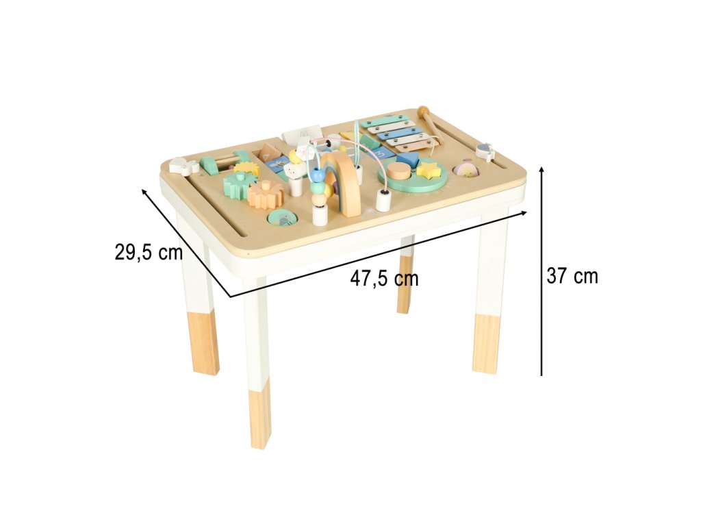 - Bezpečnost a kvalita konstrukce - stůl je vyroben ze dřeva se zaoblenými hranami, což minimalizuje riziko zranění během hry