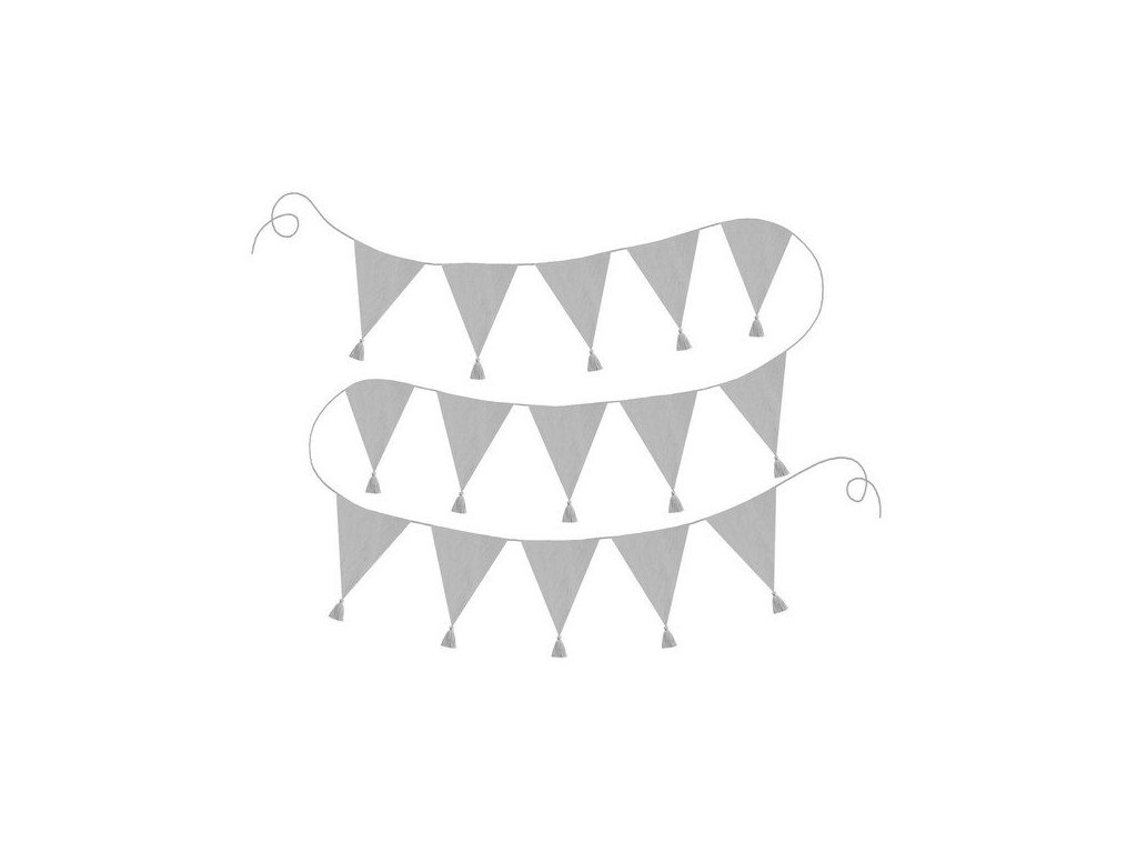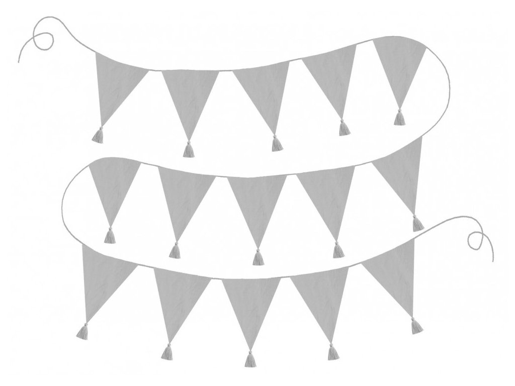 Šedé textilní vlajky 15 ks, vyrobené převážně z recyklovaného materiálu, jsou velmi pěkným doplňkem každého dětského pokoje. Dekorační vlaječky lze zavěsit nad postel nebo na zeď.