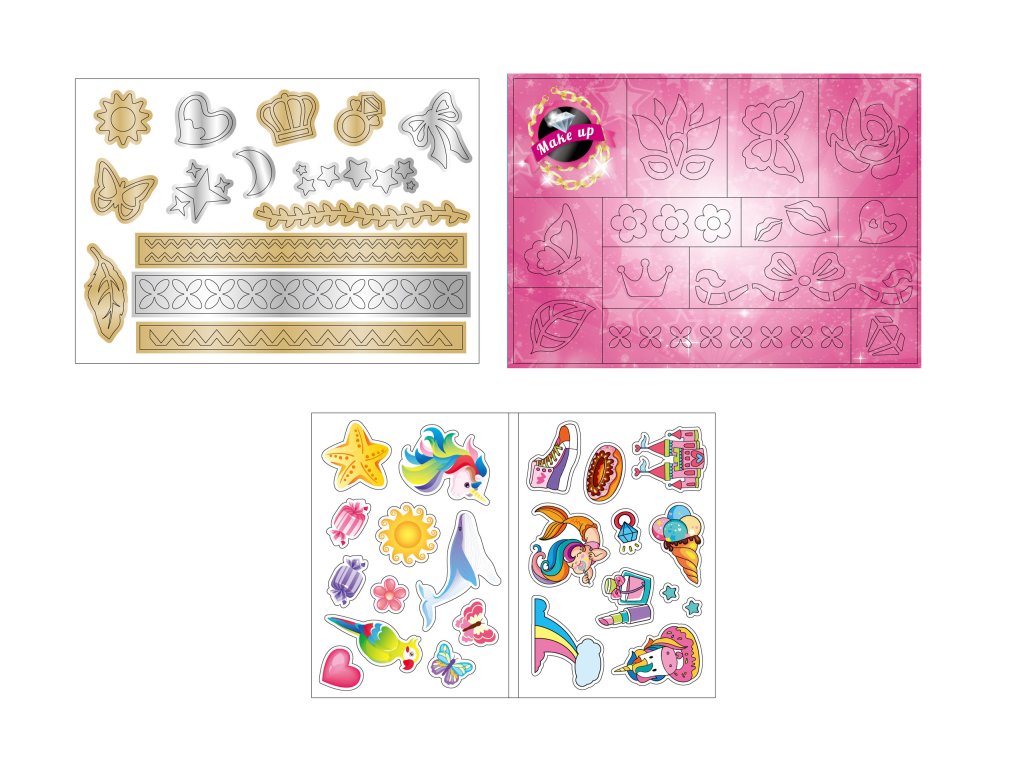 - Příslušenství: prsteny, hřebeny, špendlíky, třpytky, samolepky a tetování