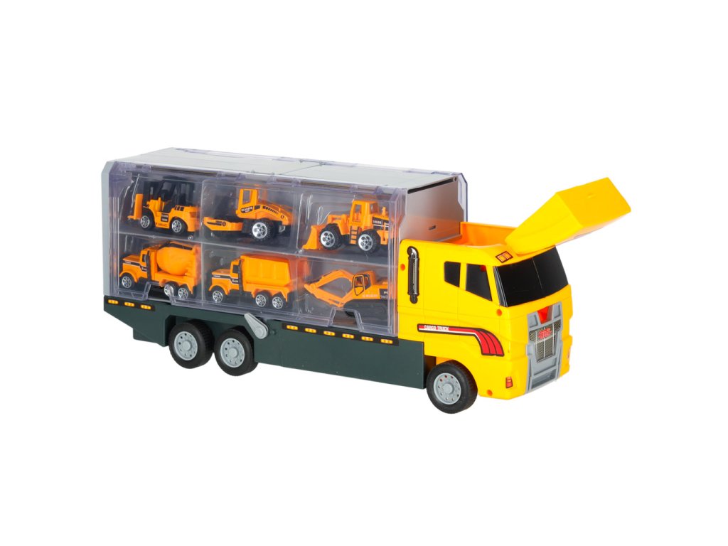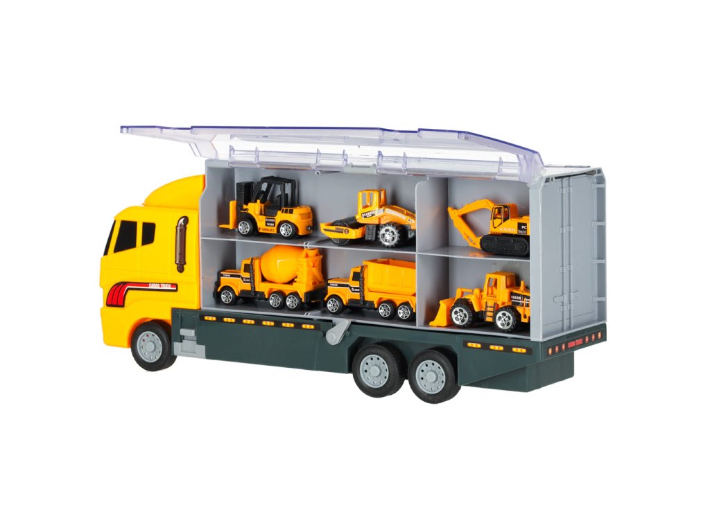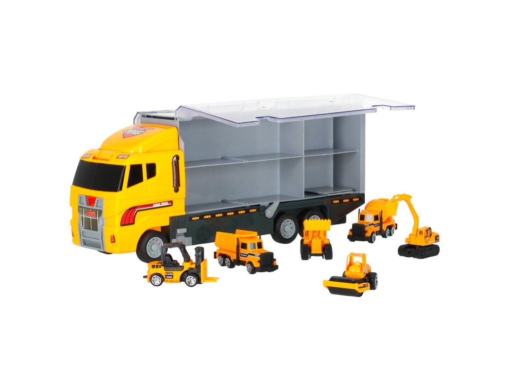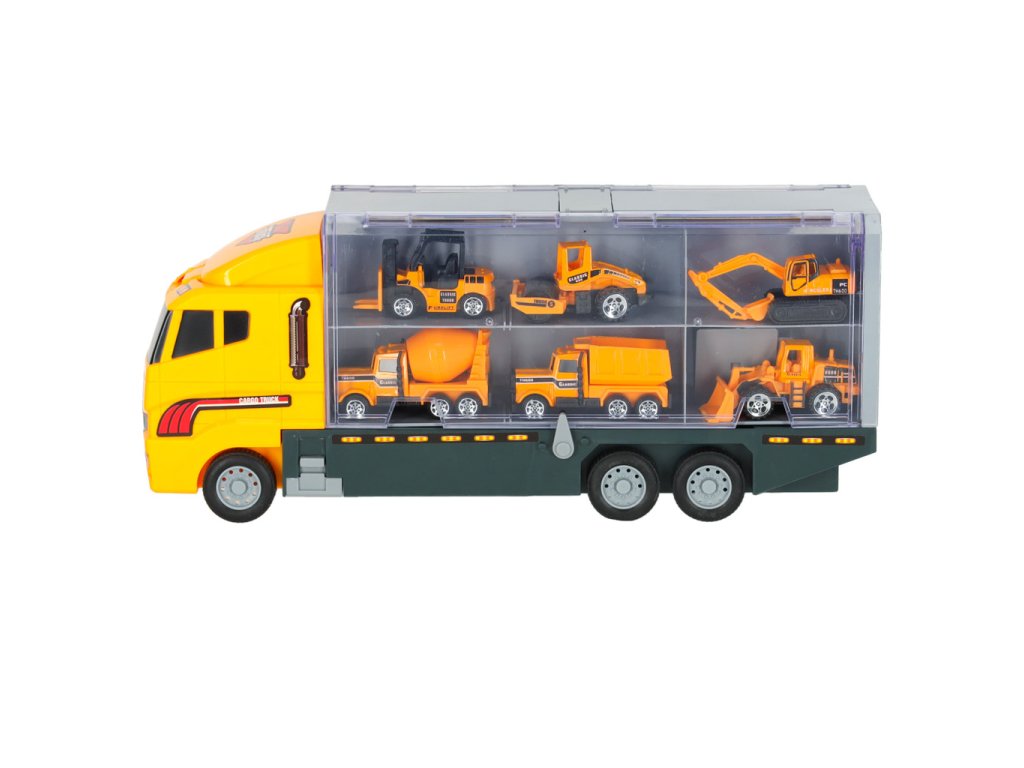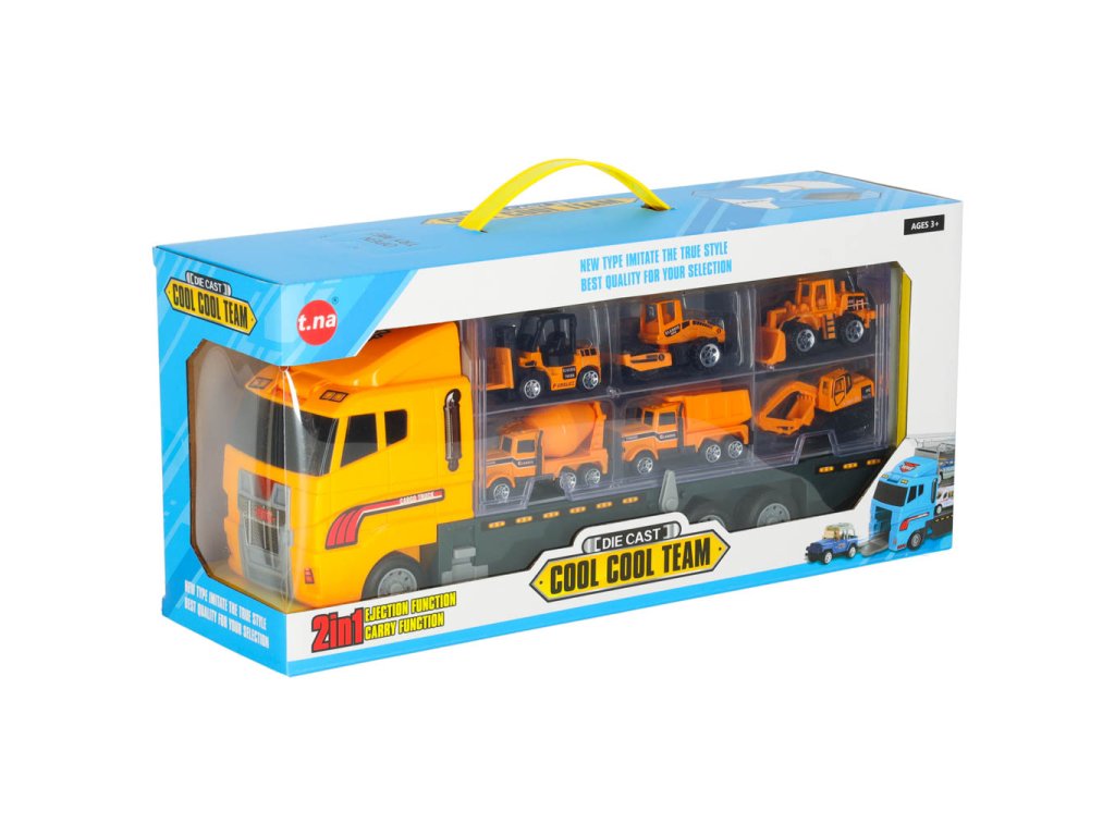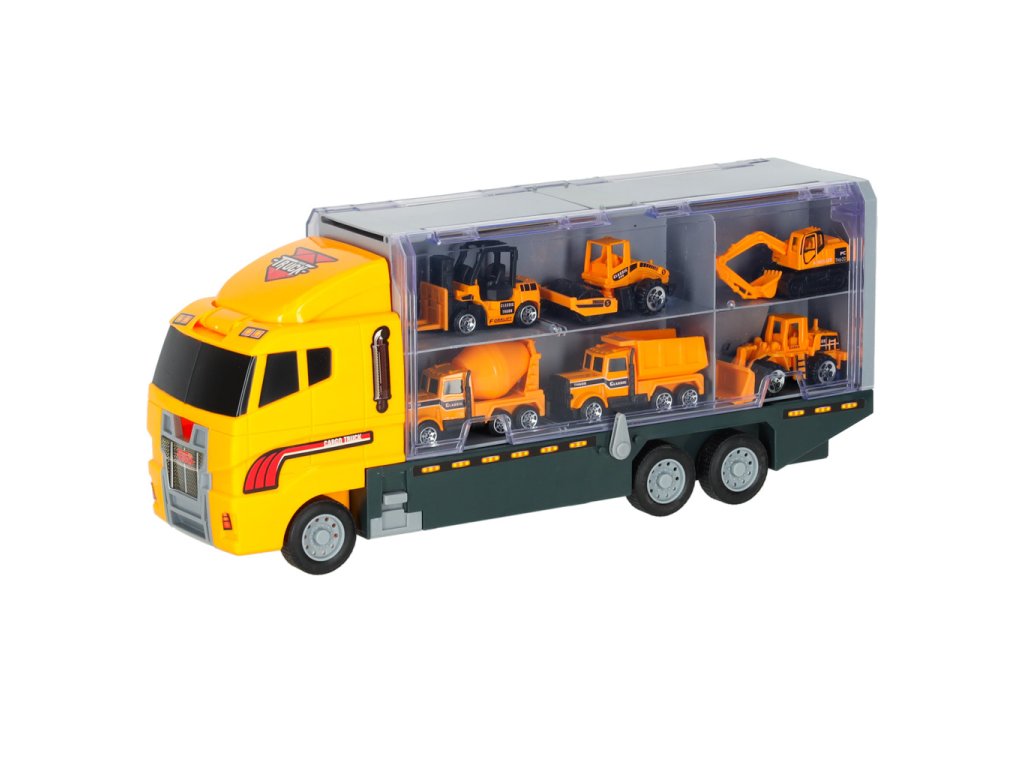 Transporter truck TIR launcher + kovové vozy stavební stroje