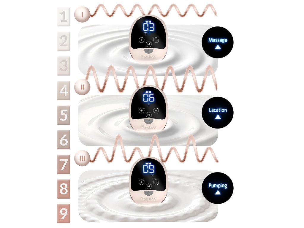 Technologie použitá v odsávačce mateřského mléka věrně odráží přirozený rytmus sání vašeho dítěte, čímž vytváří účinnou a přirozenou metodu odsávání mléka.Elektrická odsávačka mateřského mléka Nukido umožňuje zvolit správnou fázi stimulace laktace:
