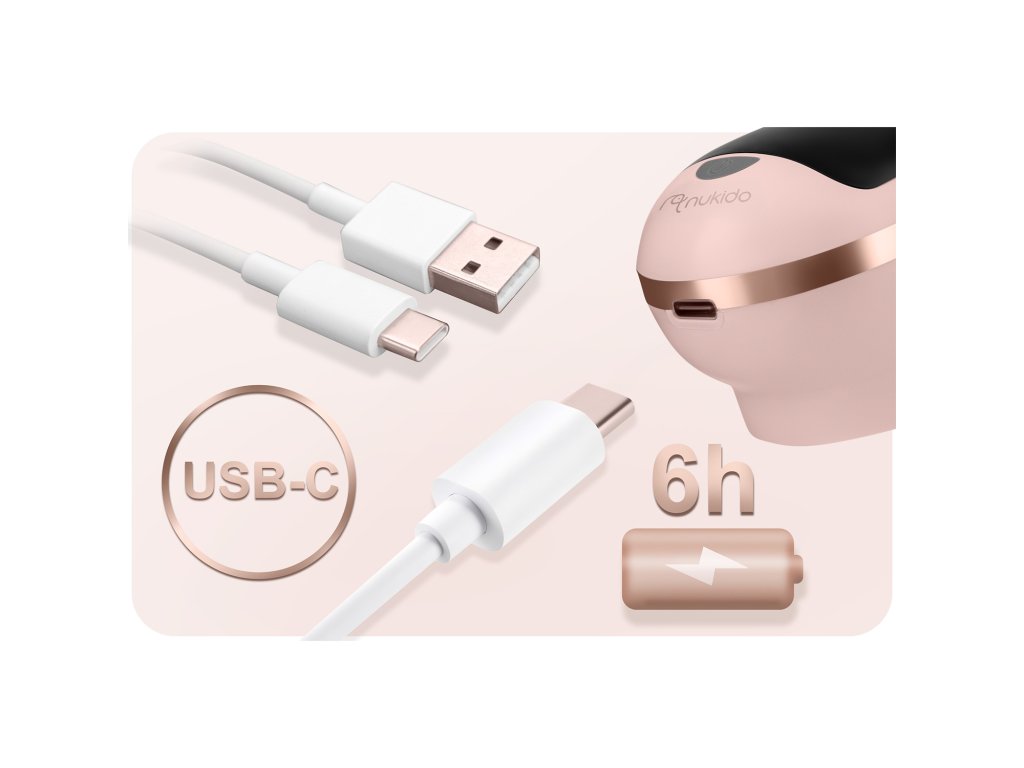 Odsávačka mateřského mléka Nukido funguje bezdrátově. Je vybavena lithiovou baterií, která po nabití umožňuje 6 hodin používání a nabíjí se pomocí dodané nabíječky USB-C.