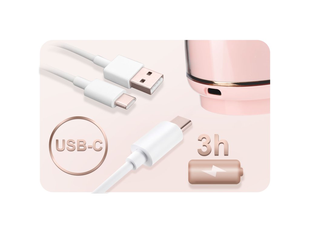 Odsávačka mateřského mléka Nukido funguje bezdrátově. Je vybavena lithiovou baterií, která po nabití umožňuje3 hodiny používání a nabíjí se pomocí dodané nabíječky USB-C.