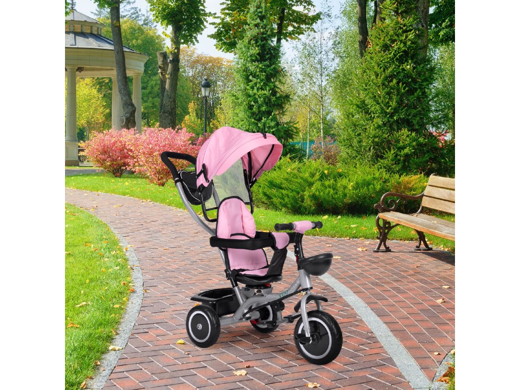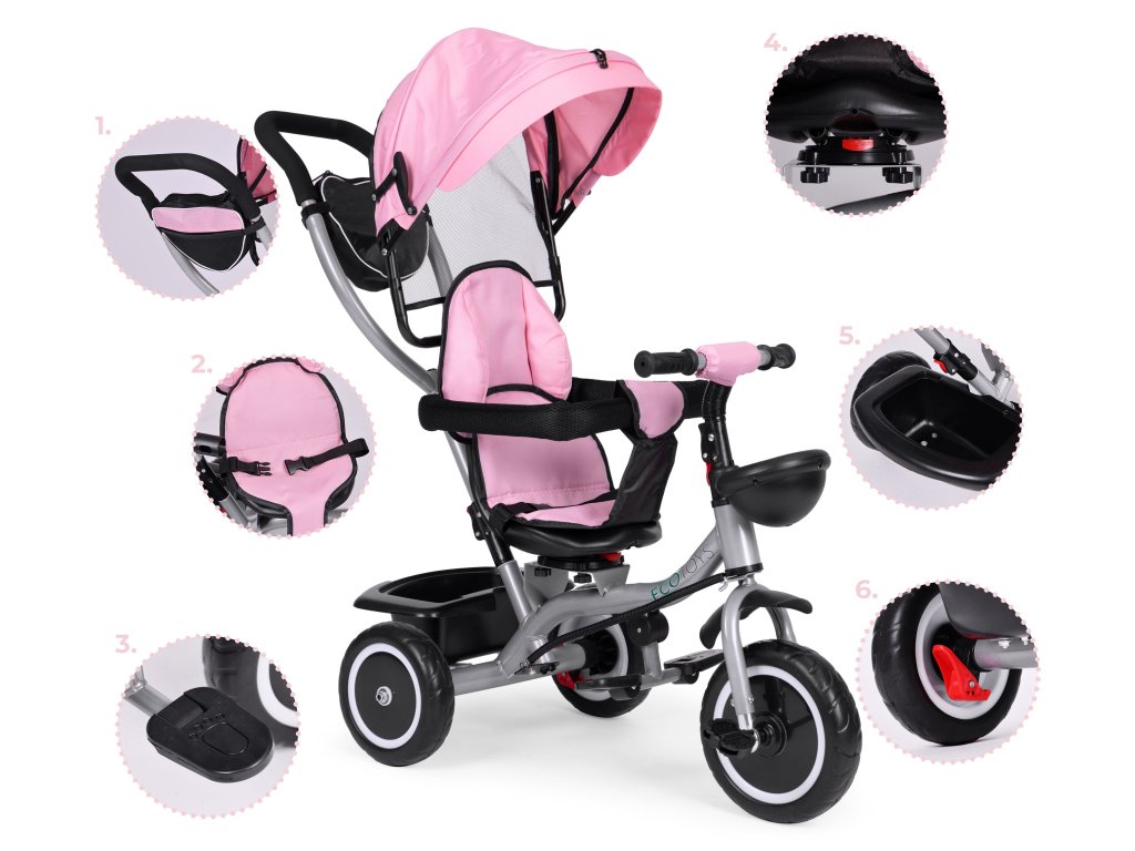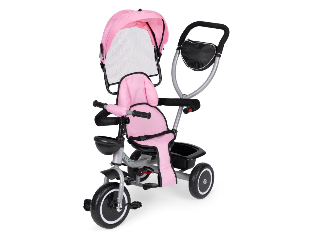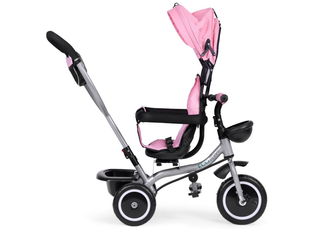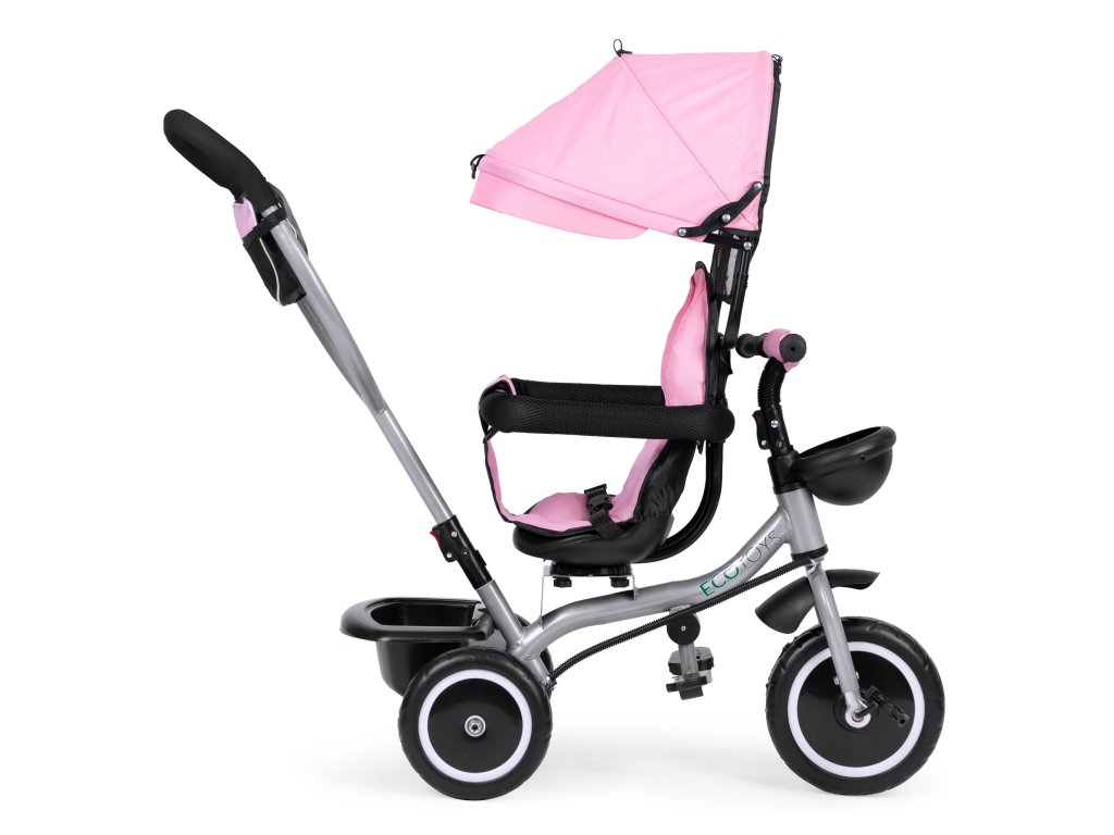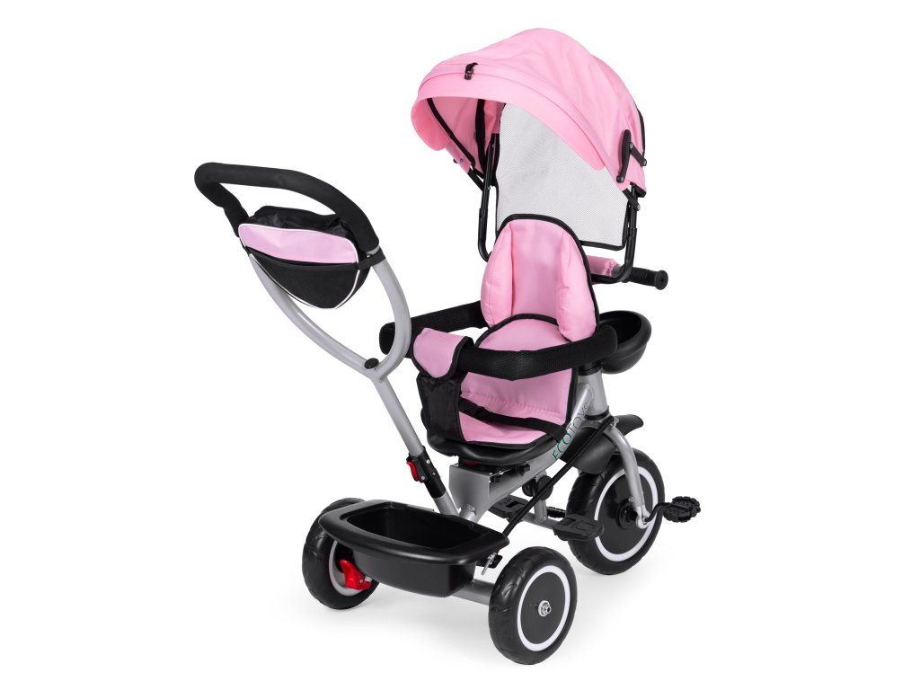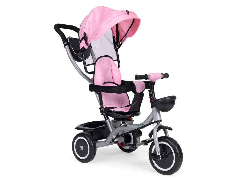 Tříkolka 2v1 s otočným sedadlem a skládací střechou růžová - ECOTOYS
