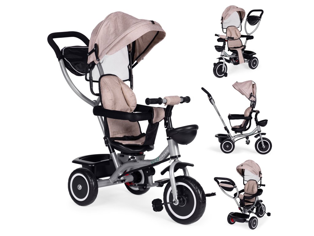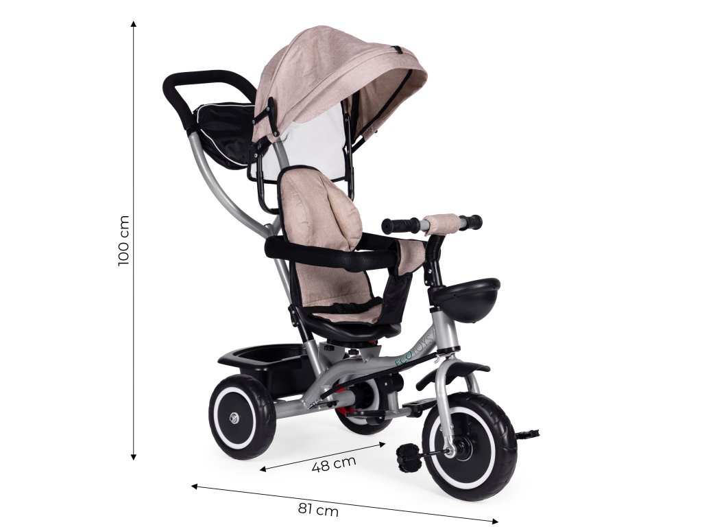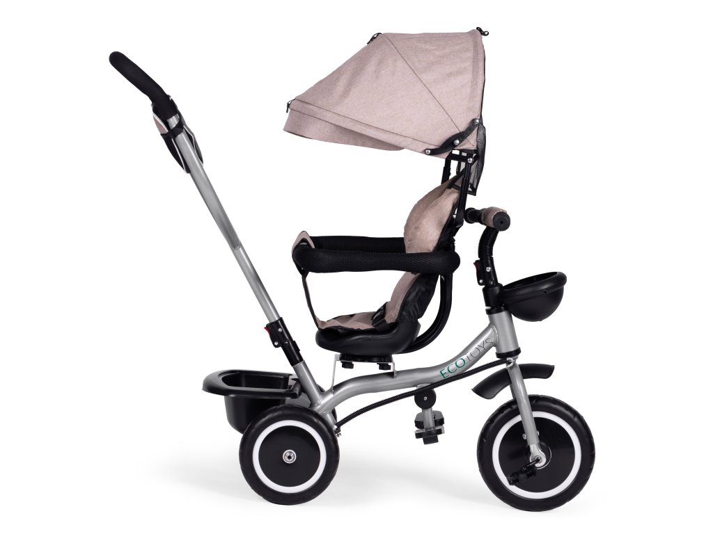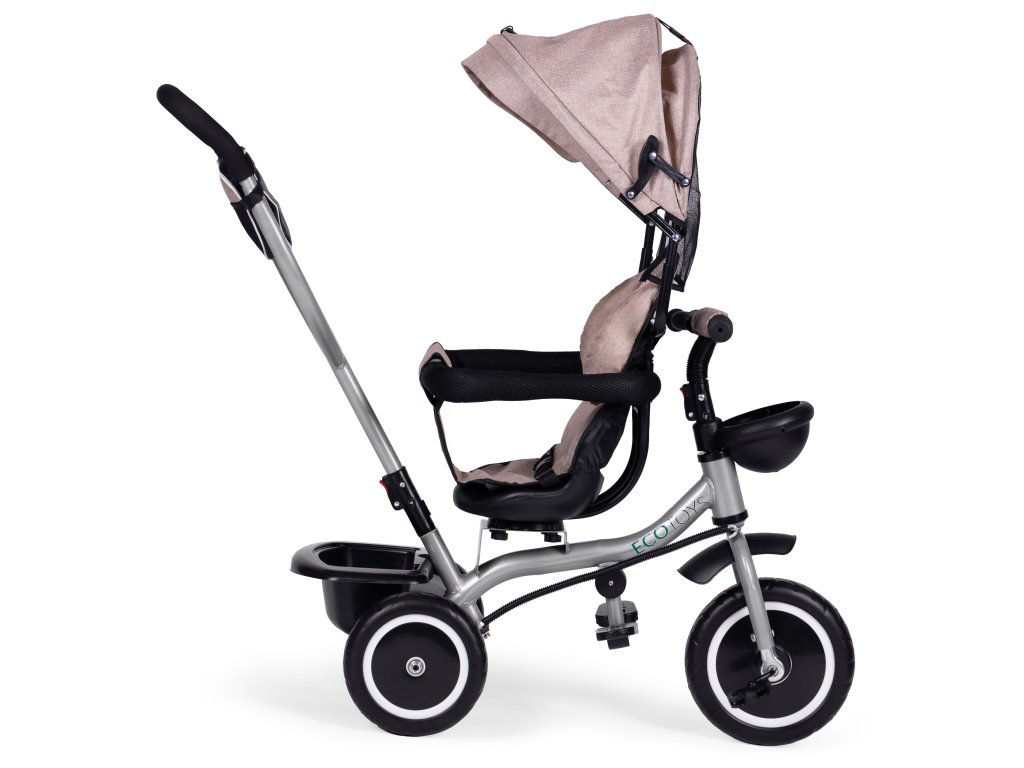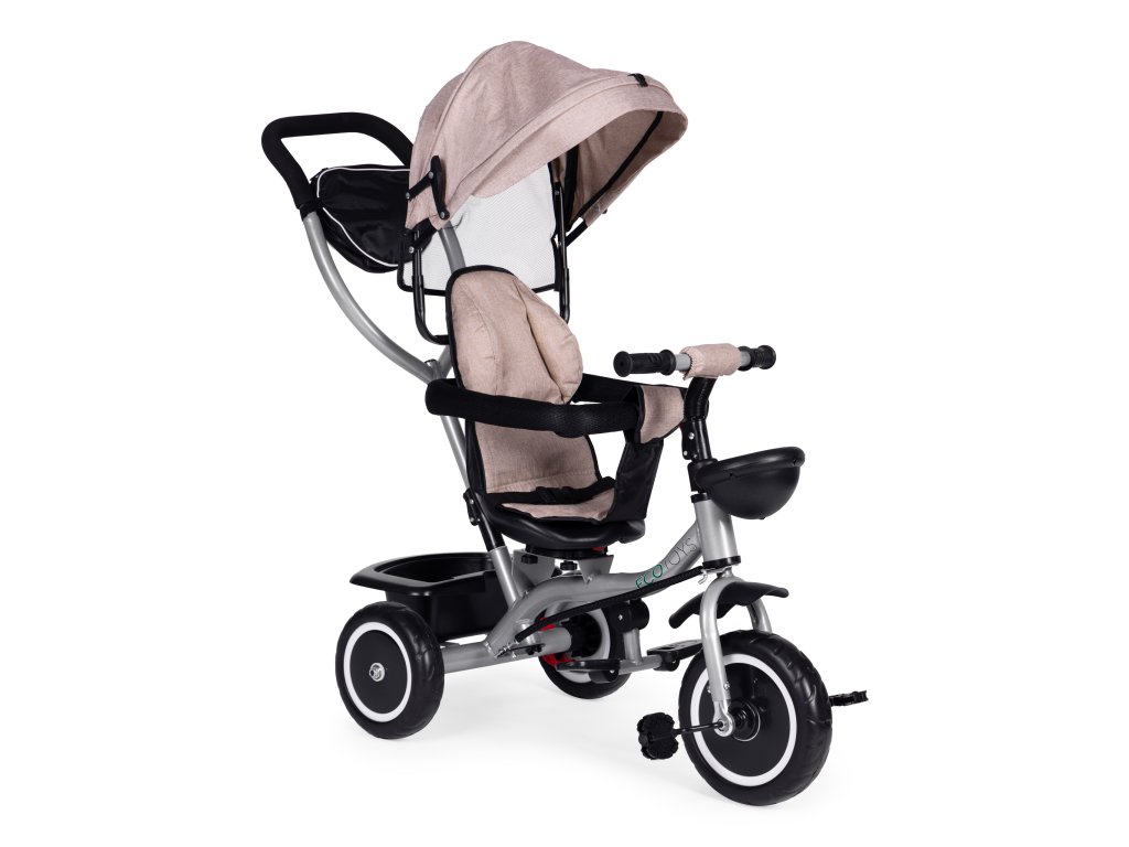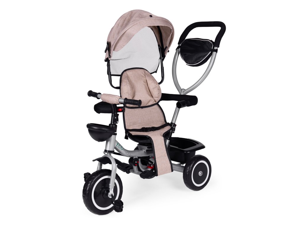 Tříkolka 2v1 s otočným sedadlem a skládací stříškou - béžová ECOTOYS