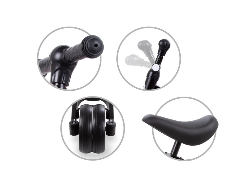pevné, měkké a profilované sedlo s ergonomickým tvarem, které zabraňuje sklouzávání dítěte při jízdě