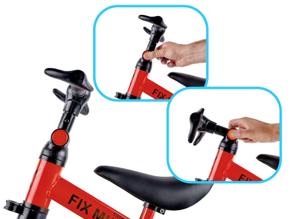Konstrukce umožňuje plné nastavení řídítek od 41 cm do 50 cm a sedla od 31 cm do 38 cm . To umožňuje dokonalé výškové přizpůsobení uživateli a zajišťuje pohodlí a bezpečnost.