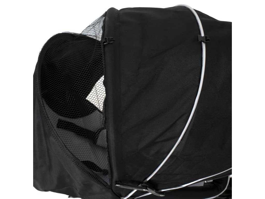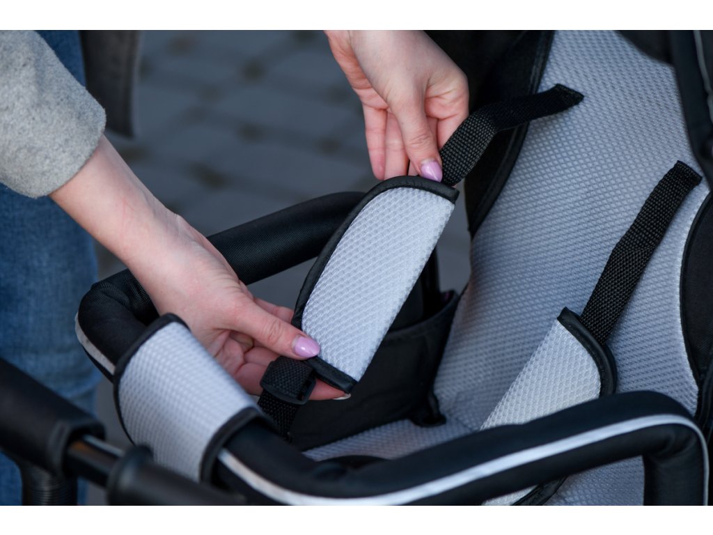 Všité lesklé pruhy na stříšce a řídítkách kola budou působit jako decentní reflektor.