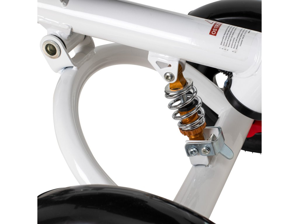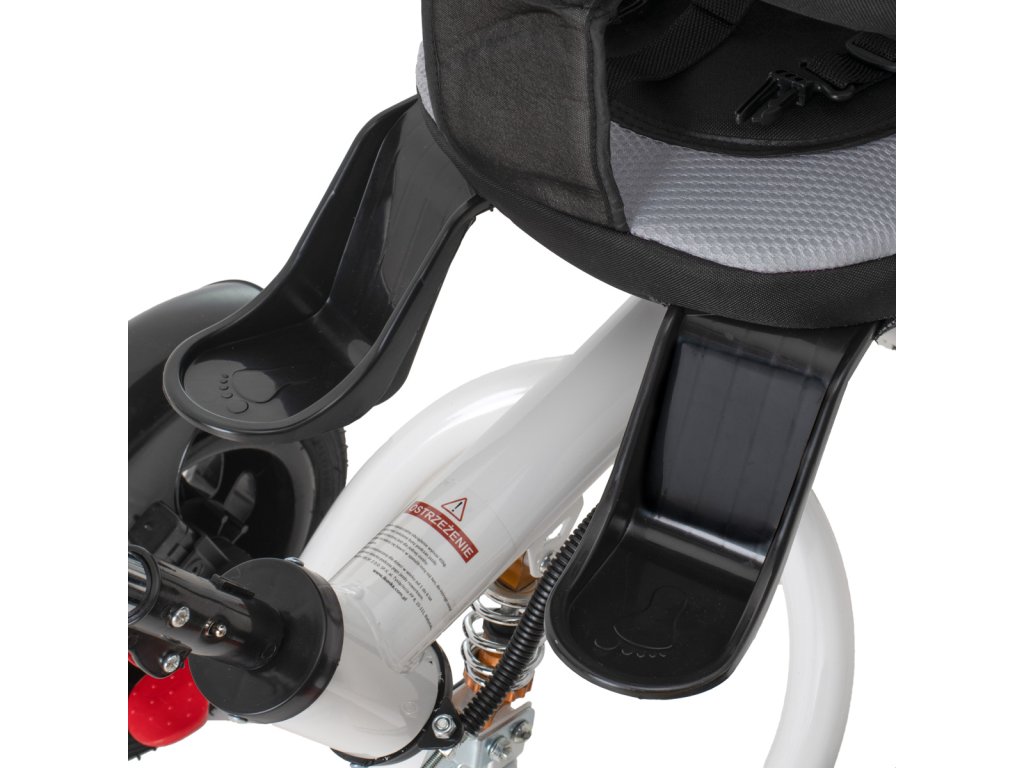 Je vybaveno dvoubodovým bezpečnostním pásem a zábranou, která zajišťuje bezpečnost dítěte a zabraňuje jeho pádu z kola.