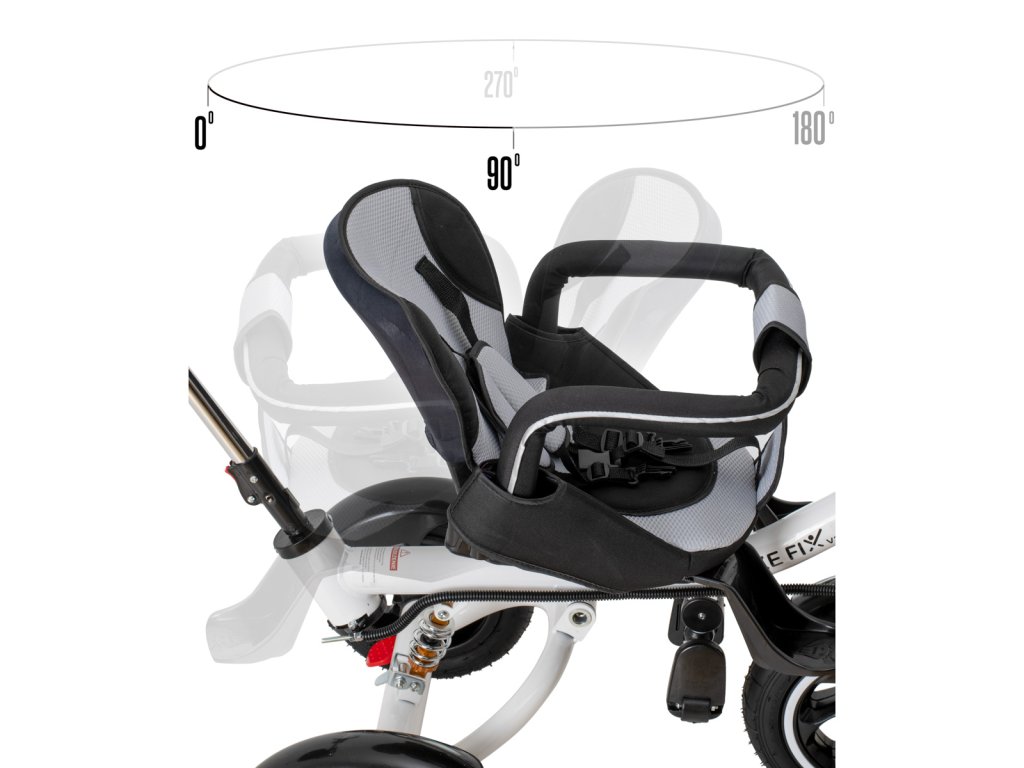 - otočné sedlo o 360° - umožňuje polohovat dítě dopředu nebo dozadu pouhým stisknutím tlačítka