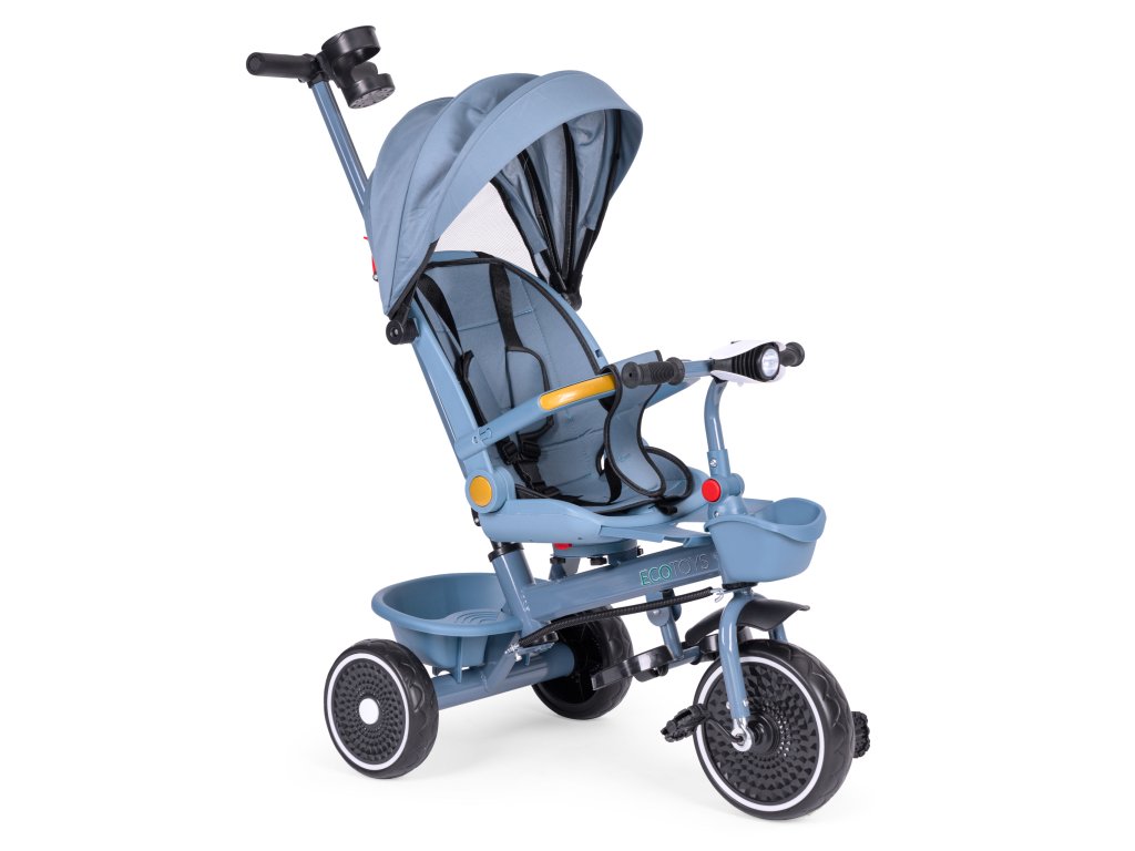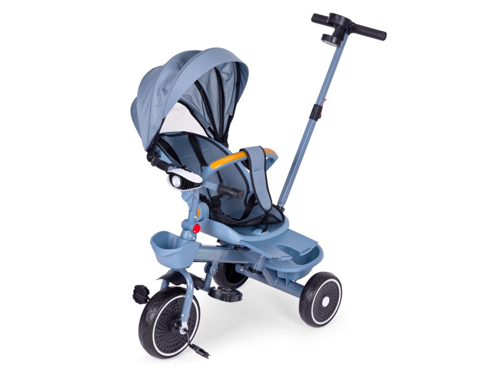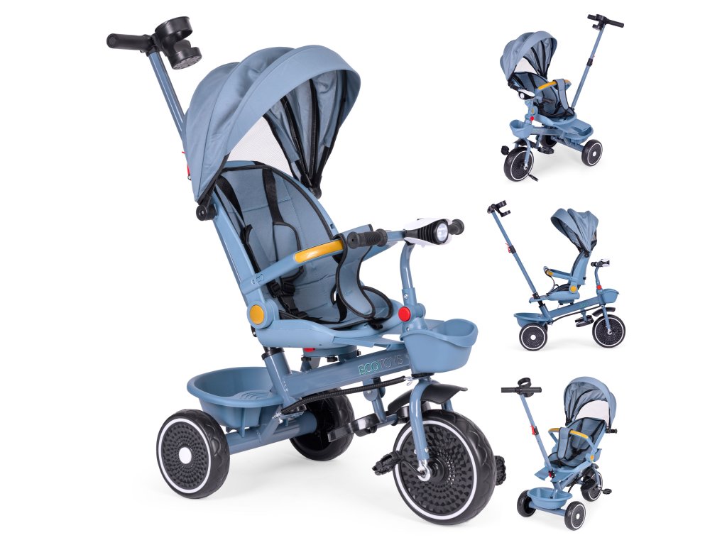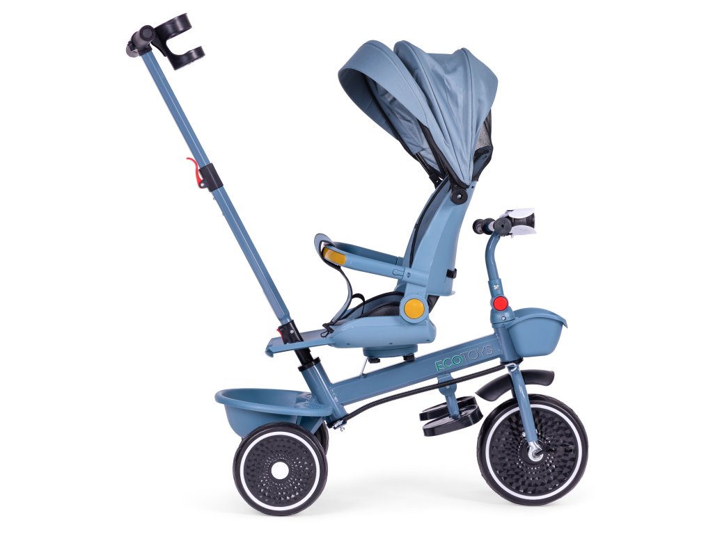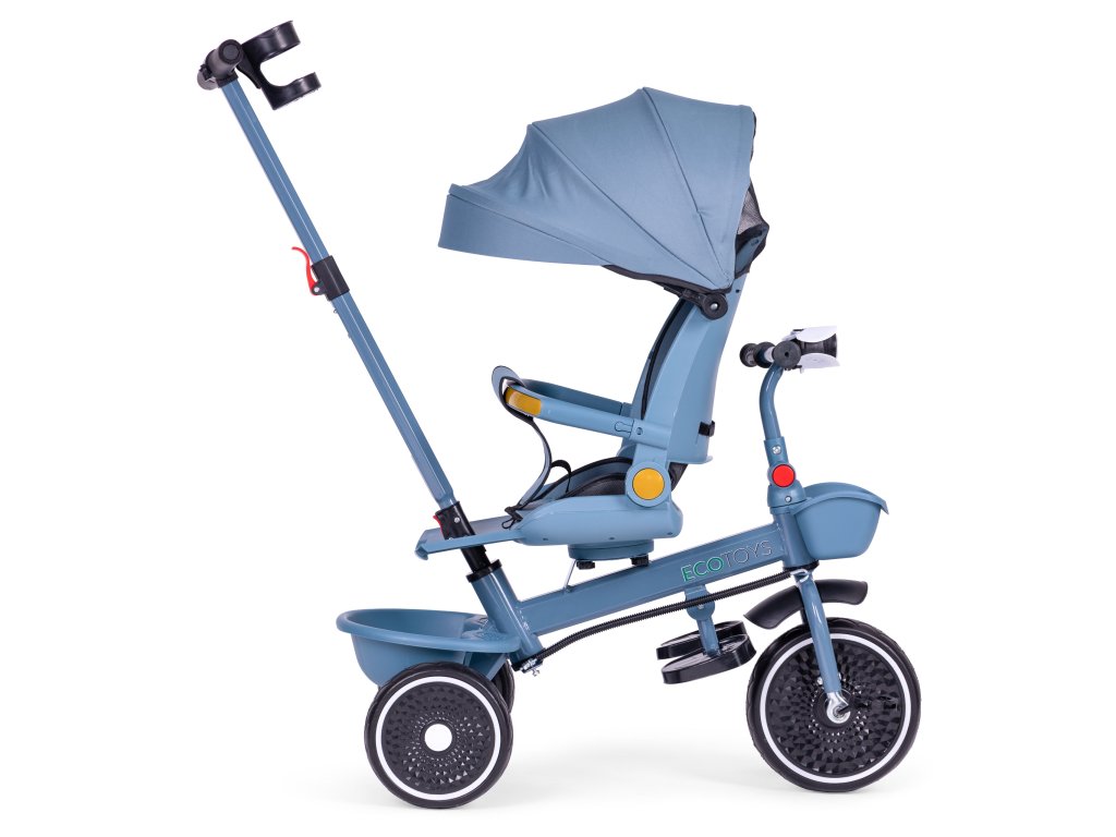 Trojkolka 2v1 kočárek otočné sedadlo skládací stříška modrá ECOTOYS