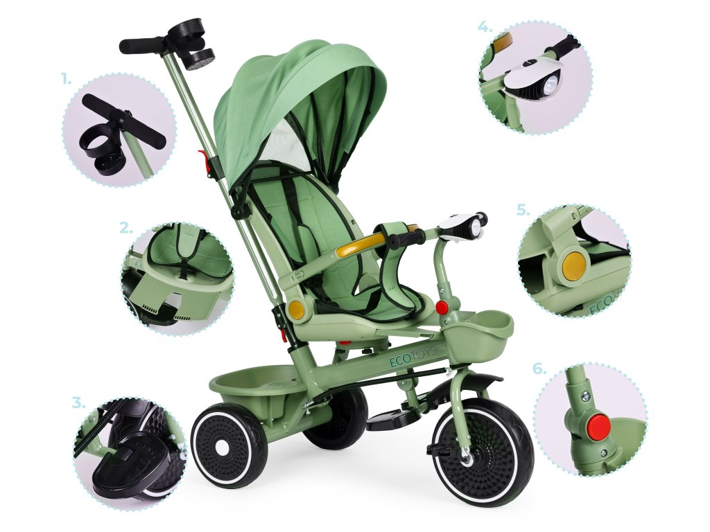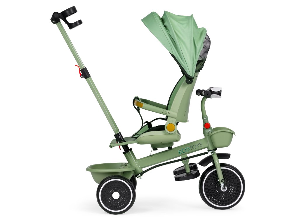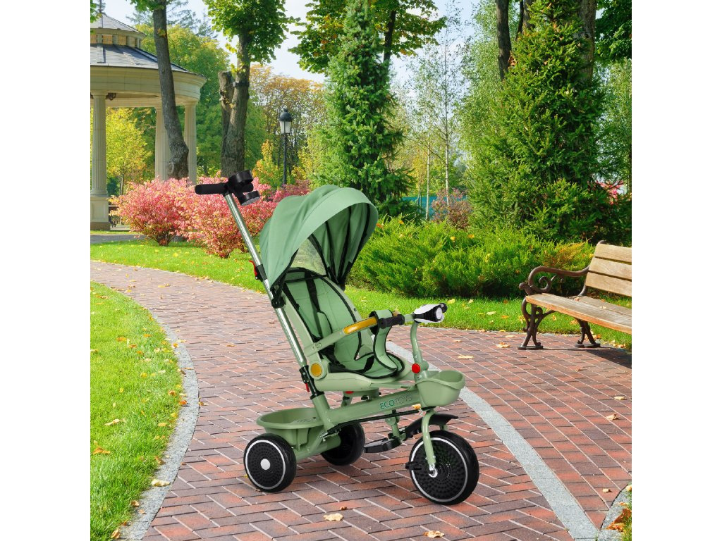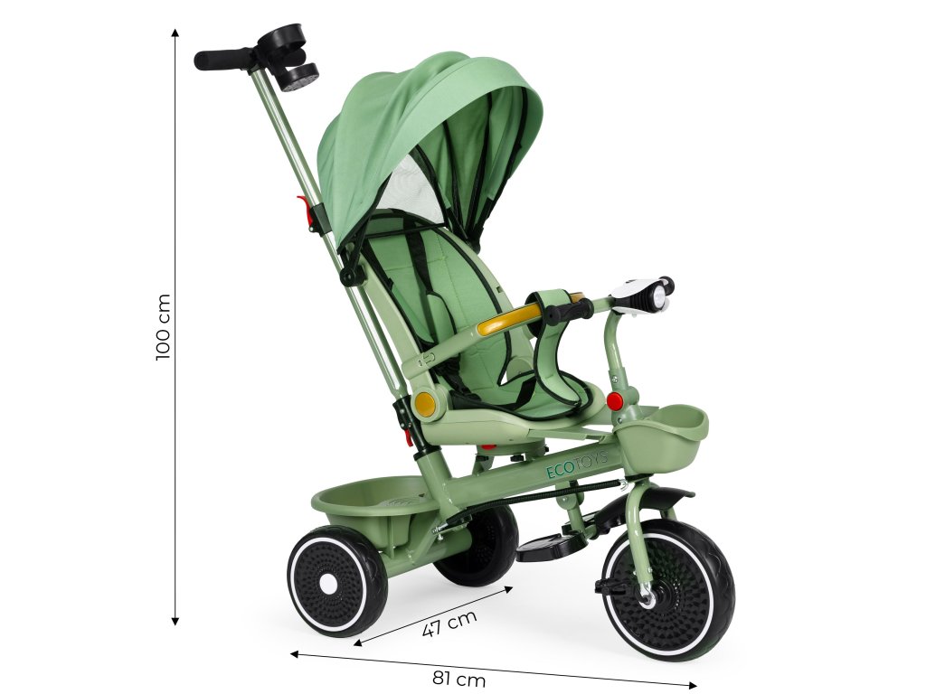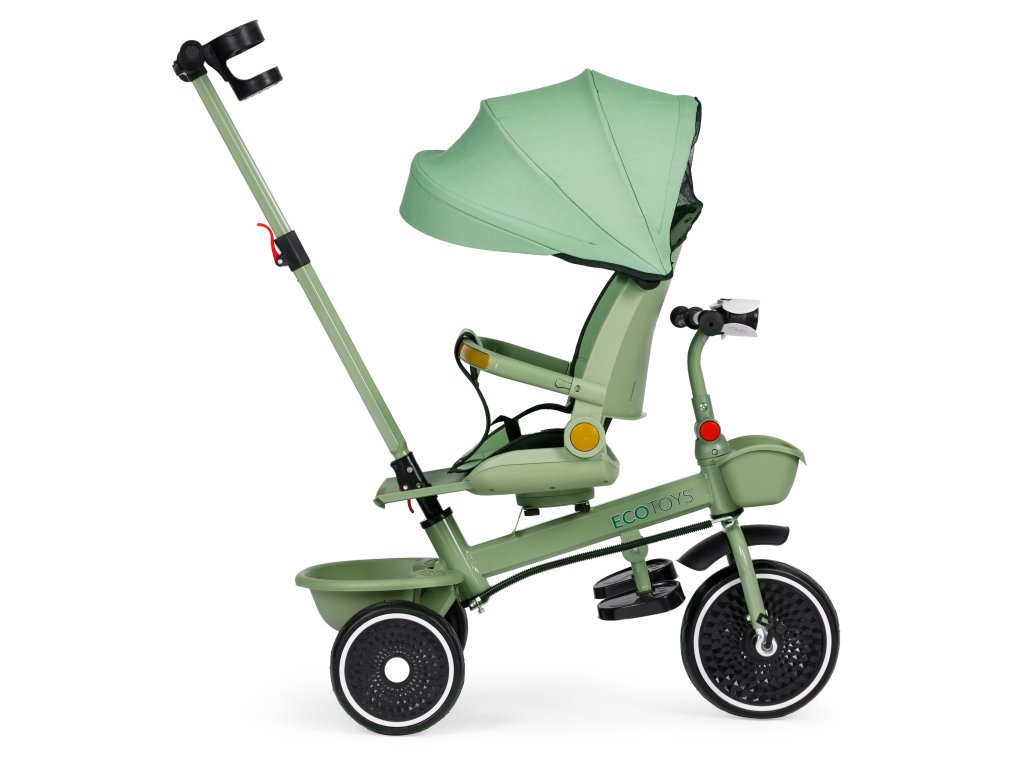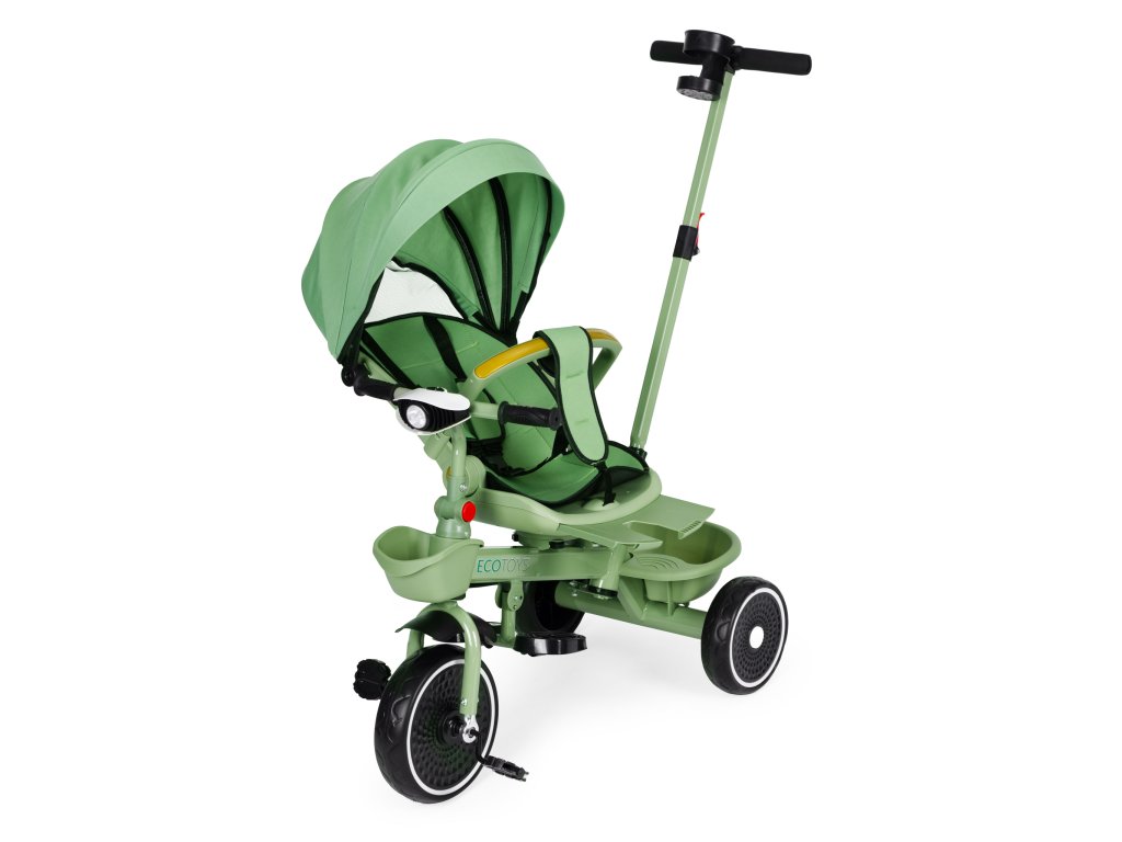 Trojkolový kočárek 2v1 otočné sedadlo skládací stříška zelená ECOTOYS