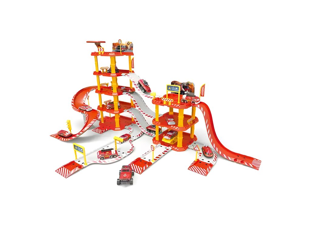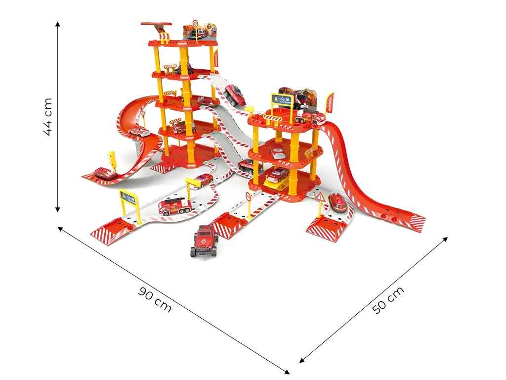 Veľká 4-podlažná detská garáž – hasiči, autá, helikoptéra