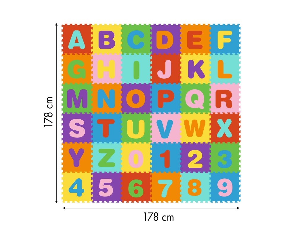 - Podložka má speciální protiskluzovou strukturu a je pro děti zcela bezpečná. Každý čtverec obsahuje čísla a písmena pro skvělou zábavu s výukovými prvky.
