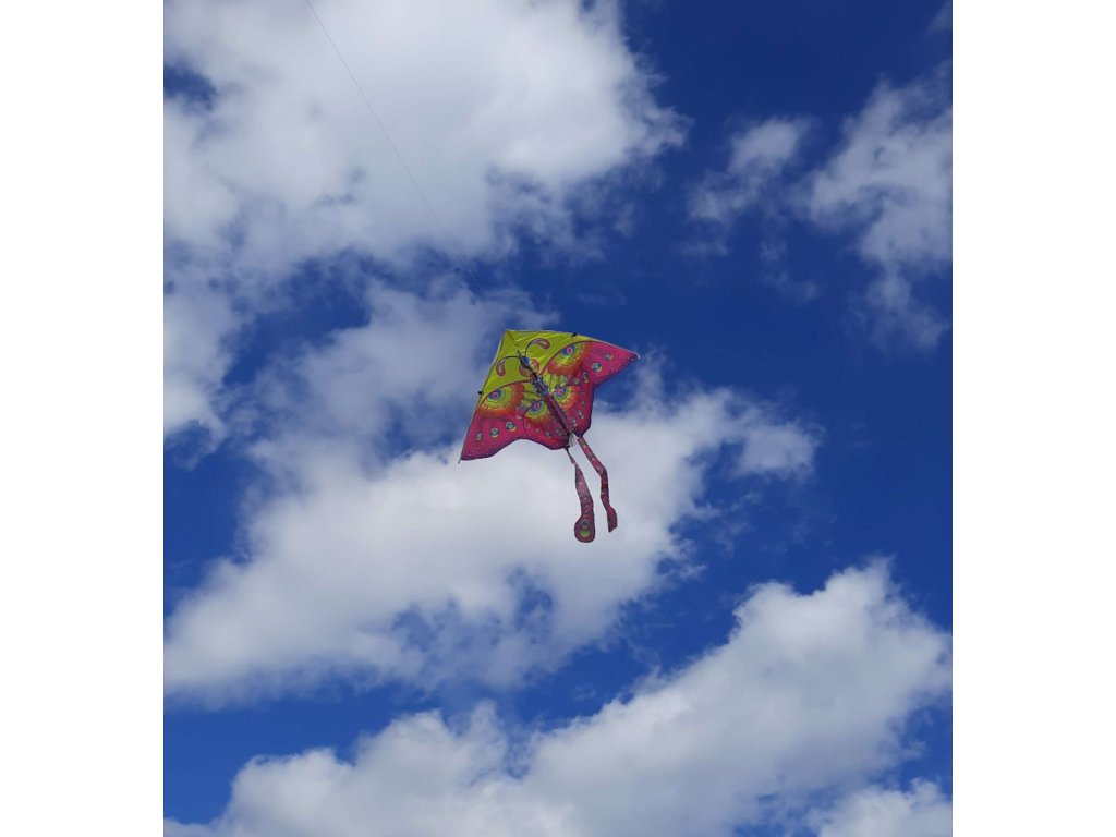 Velký barevný motýlí drak s nylonovým tělem a pevným lanem je ideální pro společnou zábavu venku. Díky detailnímu zpracování a lehké konstrukci je ideální pro celou rodinu. Rozměry: 90x48 cm. Zaručená radost pro vaše dítě!