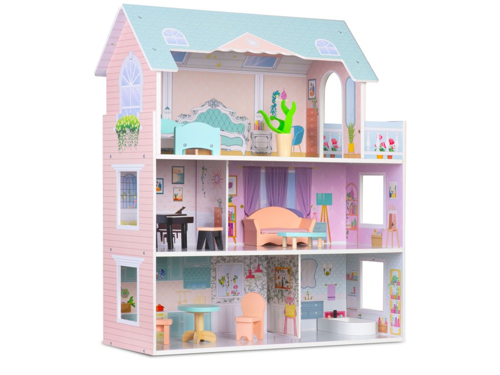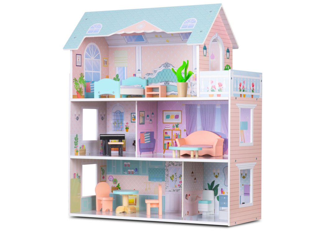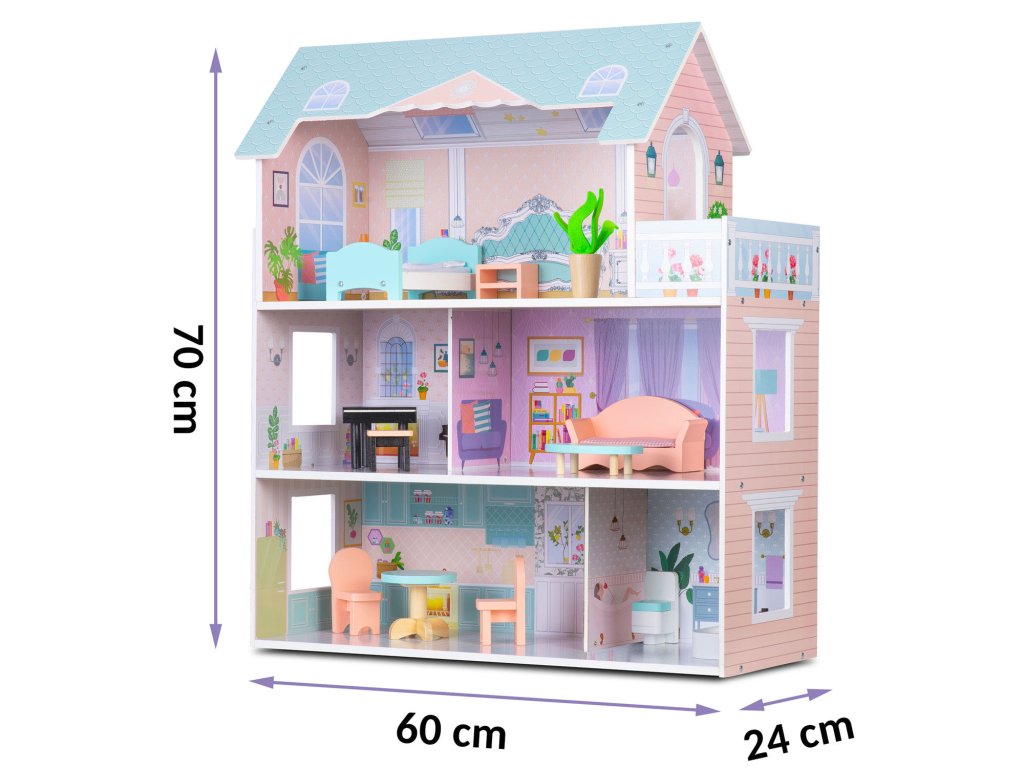 Velký třípatrový dřevěný domeček pro panenky Ricokids RK-878
