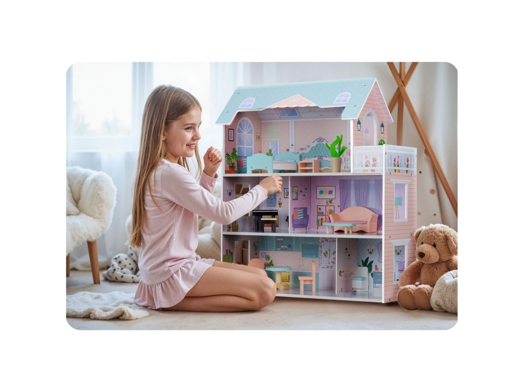 Velký, krásný domeček pro panenky s nábytkem je klíčem ke světu fantazie a radosti! Vaše holčička s ním může: