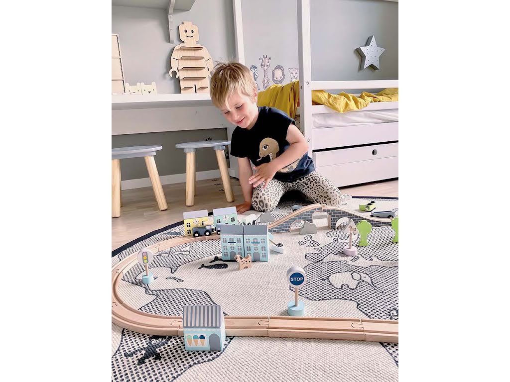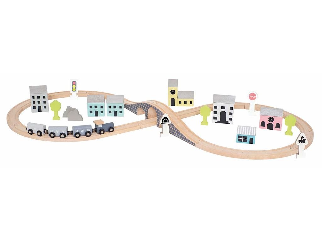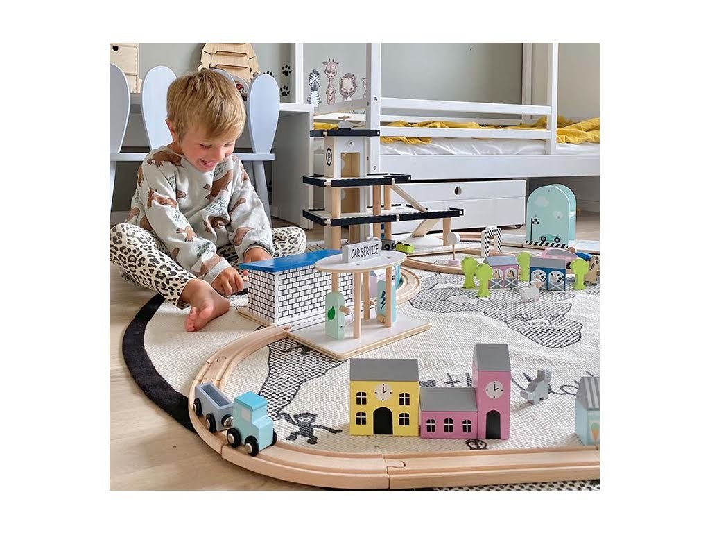 Dřevěná železnice je klasická hračka pro všechny malé dobrodruhy. Připojte se k zábavě a postavte si a prozkoumejte vlastní železnici po městě i zemi. S touto hravou vlakovou soupravou s barevně sladěnými vagónky si zaručeně užijete hodiny zábavy. Vláčkodráha obsahuje 36 herních prvků se zábavným uspořádáním trati, semaforem, tunelem a mnoha dalšími prvky. Vezměte si ji s sebou ve stylové krabici a hrajte si, kdekoli budete chtít. - Kompatibilní s ostatními hlavními značkami dřevěných železnic