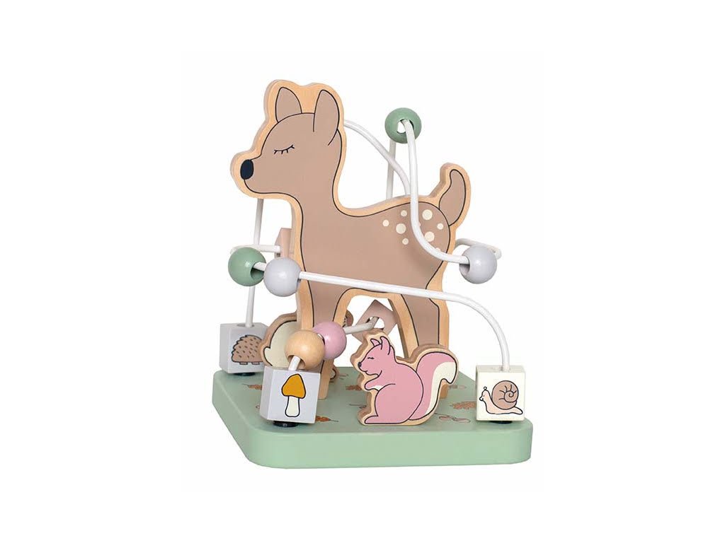 Dřevěný pult ve tvaru jelena s roztomilými zvířátky a houbami. Přemístěte je na různá místa, kolem jelena sedí zajíc a veverka. Ideální dárek pro roční dítě.