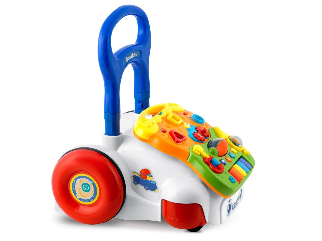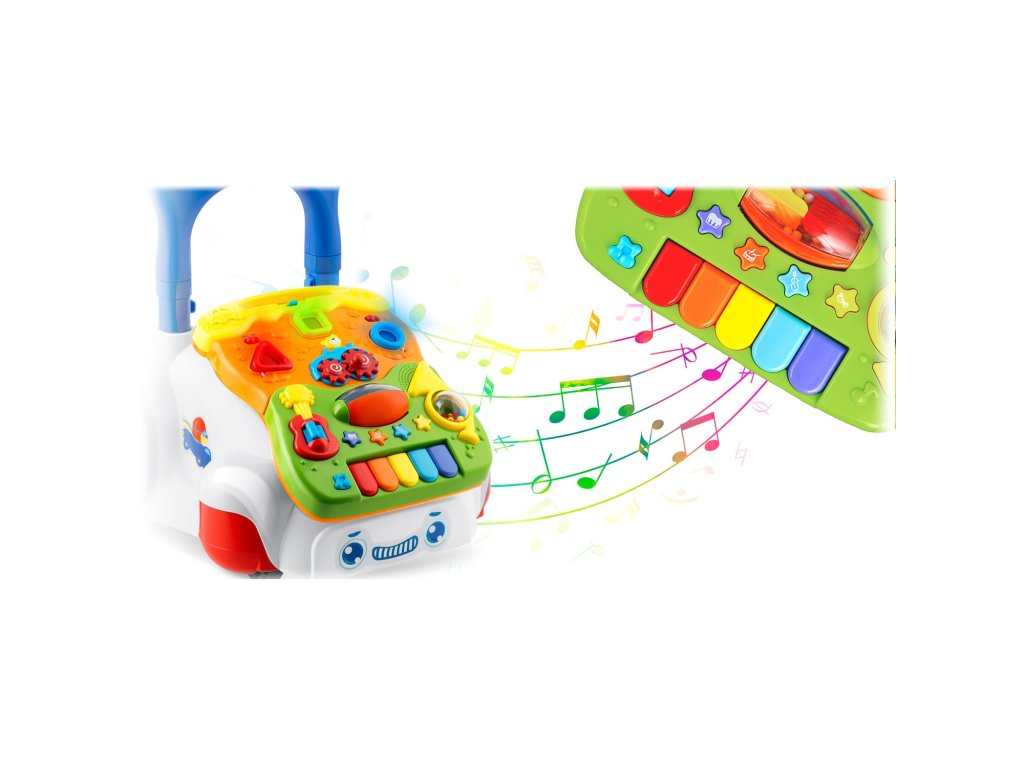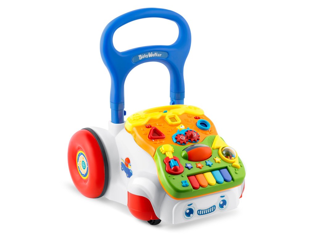 Kromě výuka chůze, výrobek je ideální pro učení barev a tvarů. Odnímatelný panel (pro vyjmutí panelu stiskněte tlačítko ve spodní části konstrukce a uvolněte zámek) lze použít jako výukovou tabuli.
