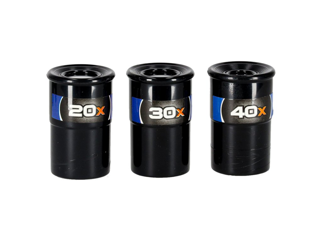 Dalekohled s vyměnitelnými objektivy různé síly (20x, 30x, 40x).