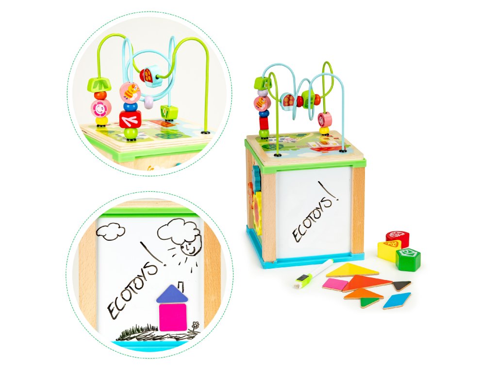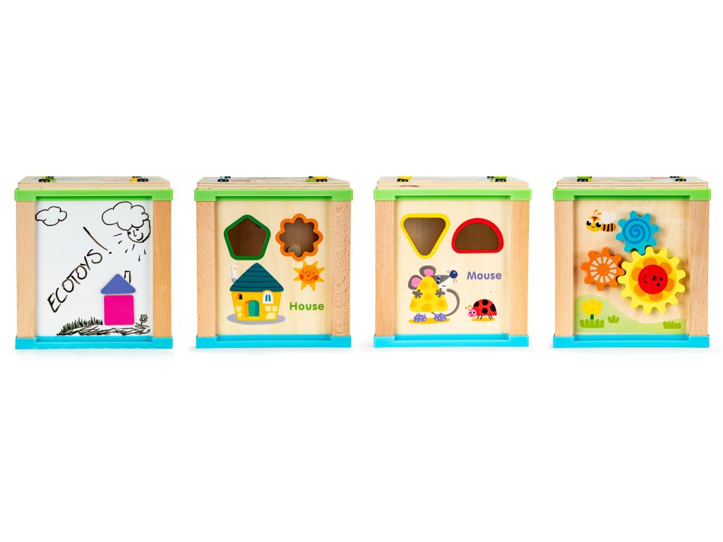 Každý rodič chce, aby jeho dítě se vyvinulo ve vhodném a udržitelným způsobem . Vzdělávací hračka značka ECOTOYS, umožní vašemu dítěti mnohostranný rozvoj to vše díky svému designu, kdy každá stěna má zcela jinou funkčnost a charakter.