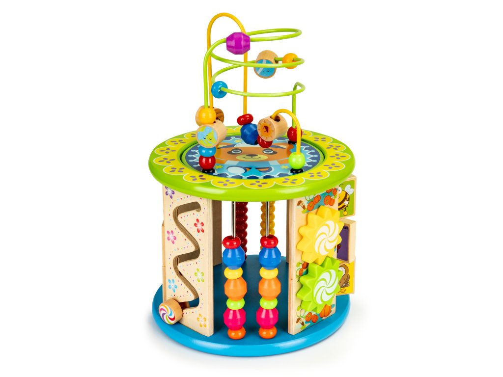 Hračka je vybavená mnohými pohyblivými časťami, ktoré podporujú hru a zároveň rozvíjajú zručnosti batoľaťa. Hračka učí rozpoznávať farby, tvary a rozvíja motorické zručnosti, a zároveň poskytne veľa zábavy každému dieťaťu.