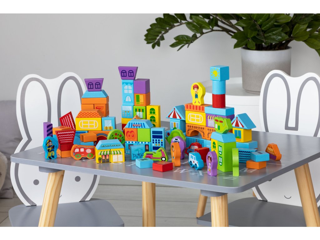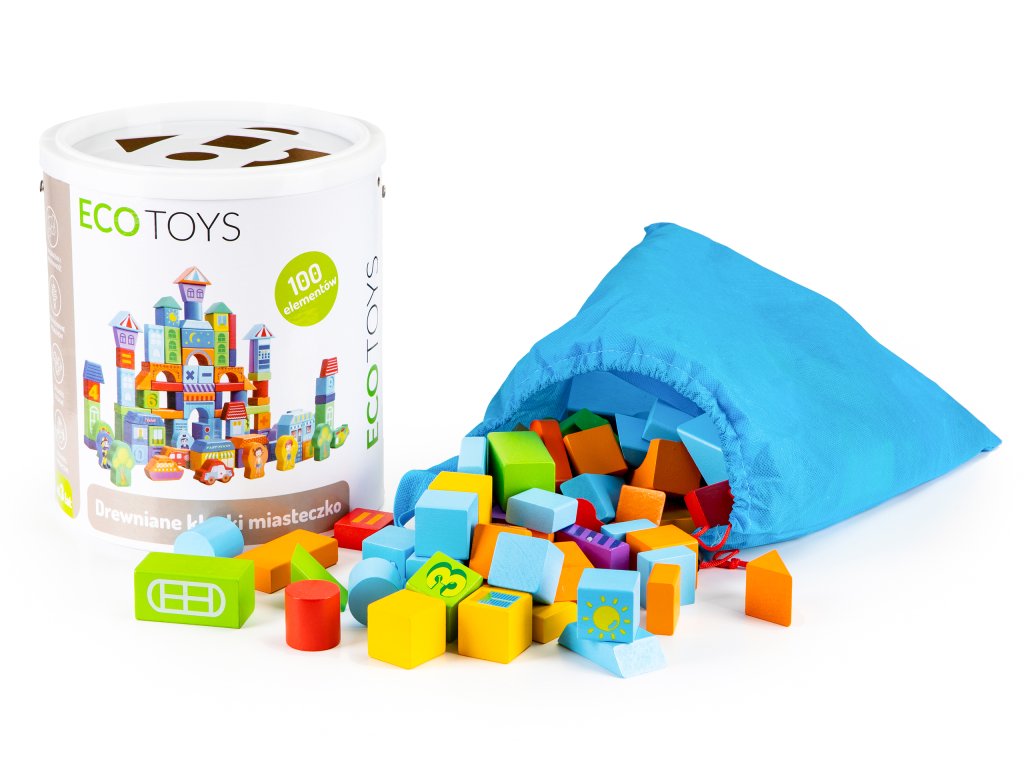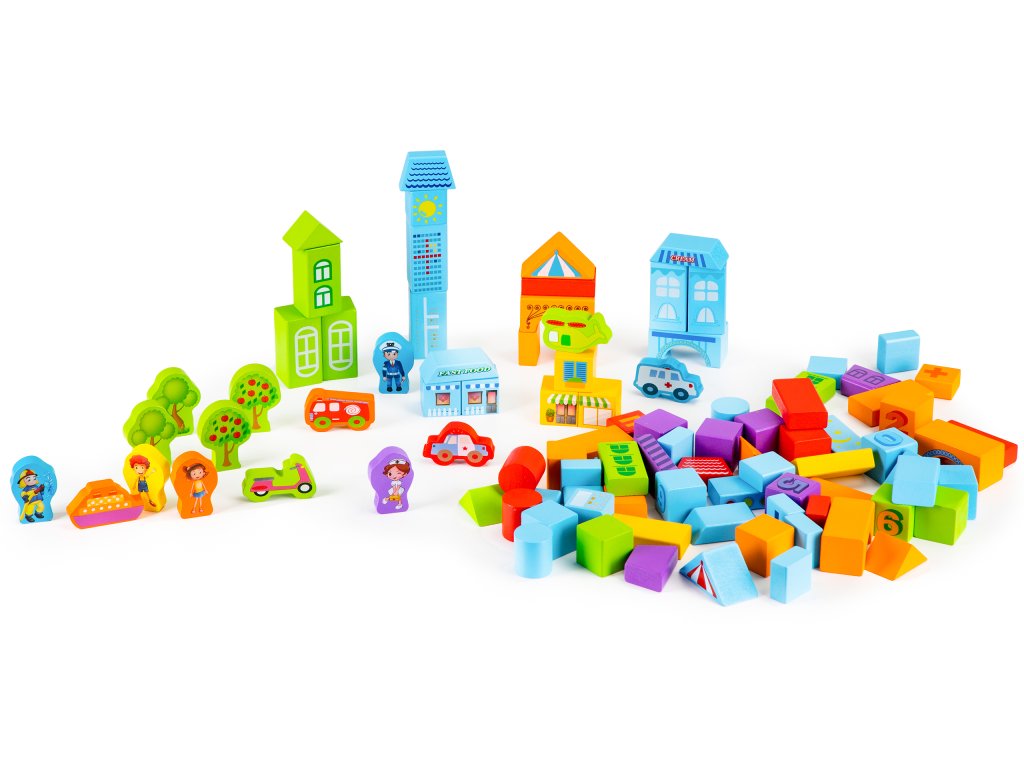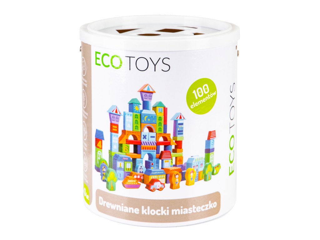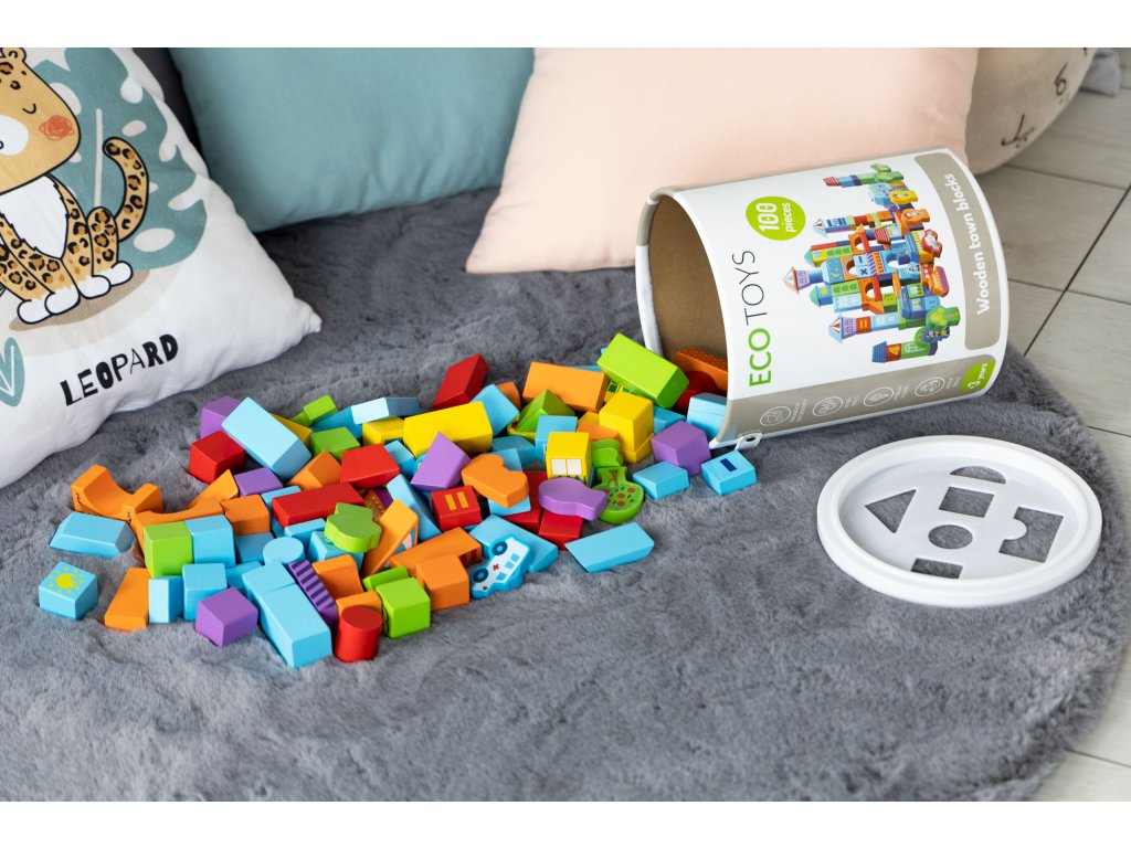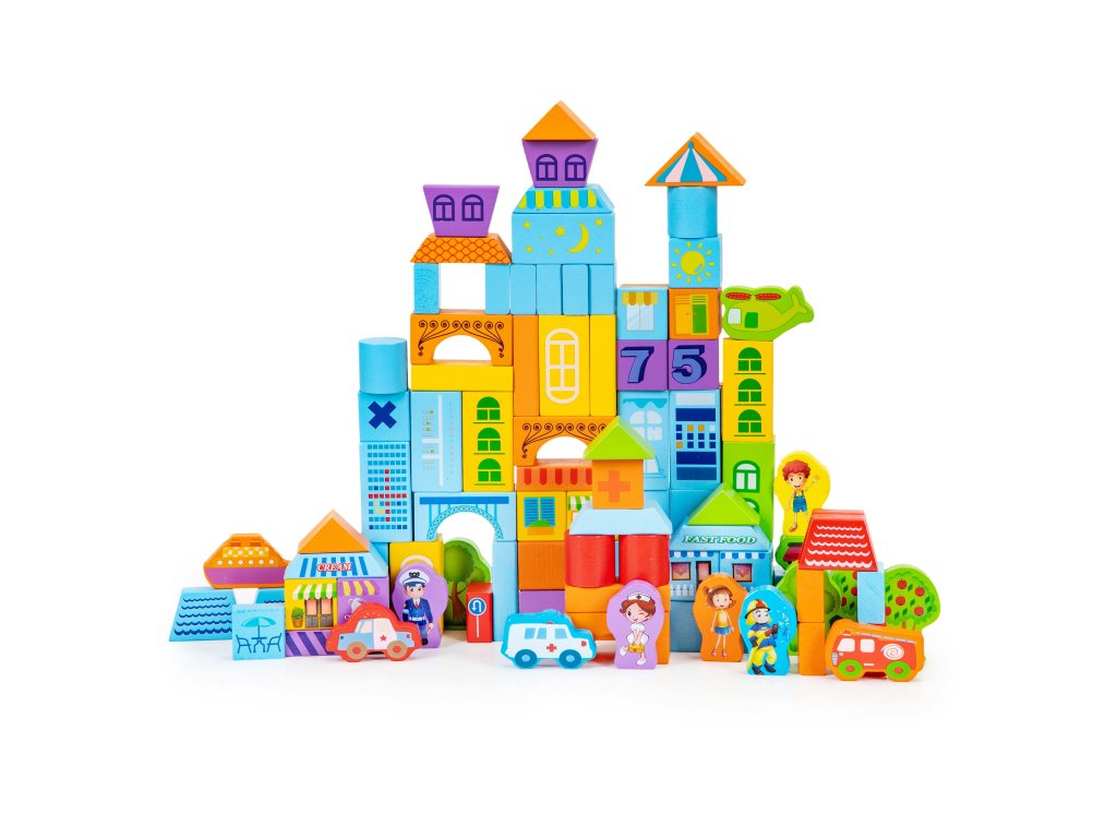 Vzdělávací dřevěné kostky město 100 ks třídič ECOTOYS