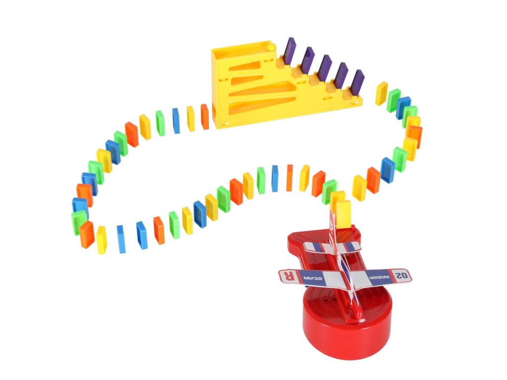 Fantastické kreativní a vzdělávací sada které vaše dítě jistě potěší. Interpretace zajímavých cest pomocí domina aby mohly později velkolepě spadnout, je velmi zábavné. Ale co takhle přidat katapult letadla? Tomu nikdo neodolá!