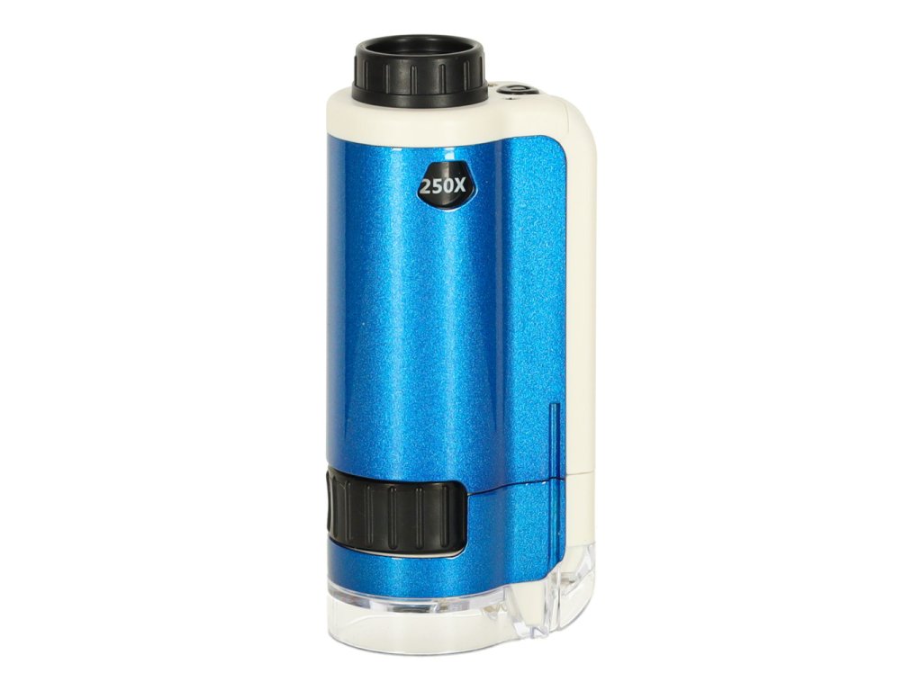 dvě úrovně zvětšení - zvětšení 100x a 250x umožňuje detailní pozorování různých věcí: listů, vláken nebo krystalů soli