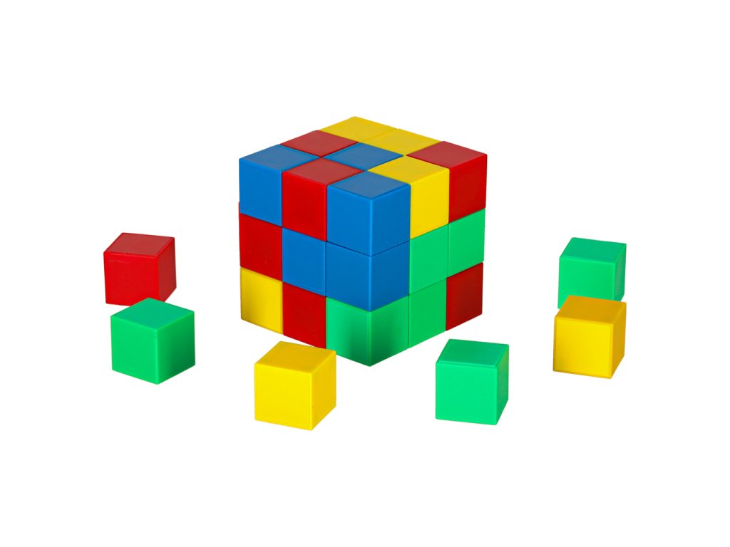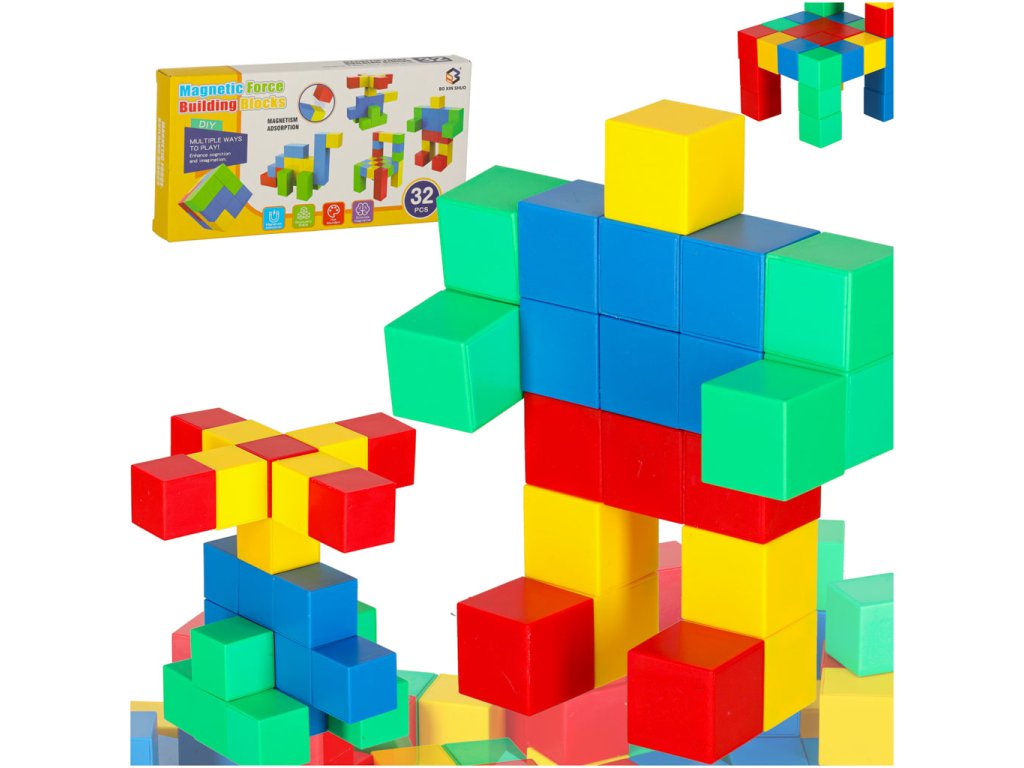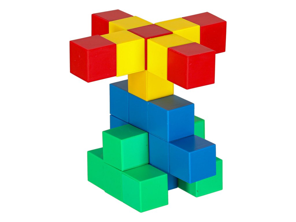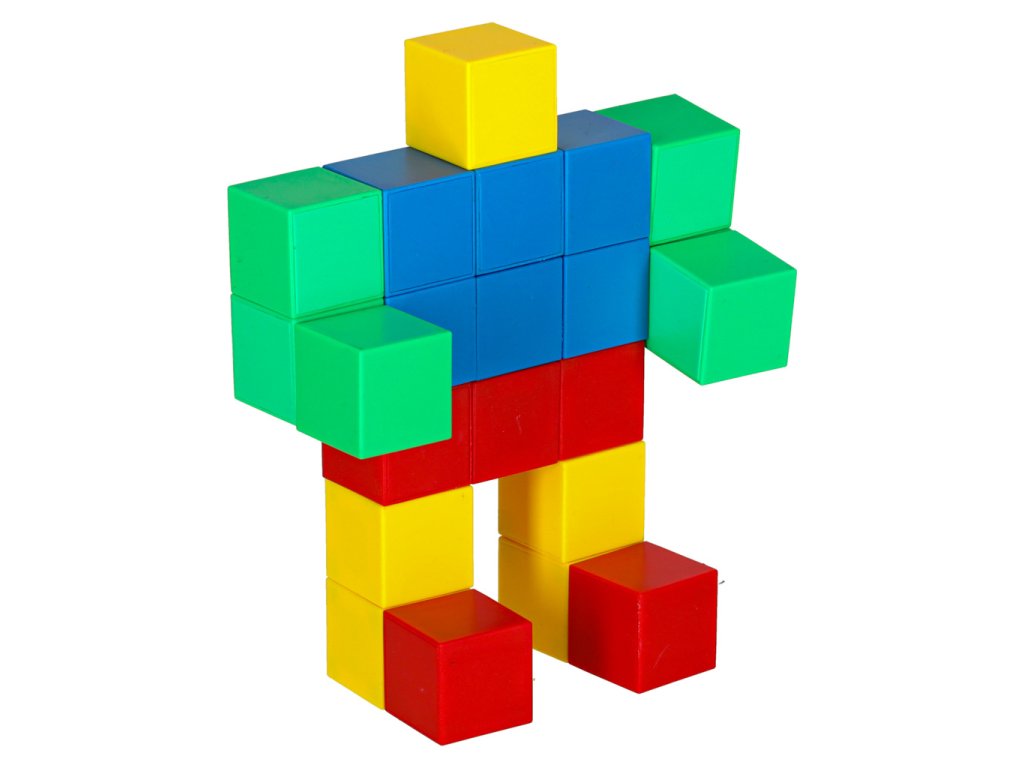Kreativní stavebnice s 32 plastovými kostkami pro děti od 3 let. Rozměry kostek 2,5 cm x 2,5 cm, balení 20,5 cm x 10,5 cm x 2,7 cm. V kartonové krabici.