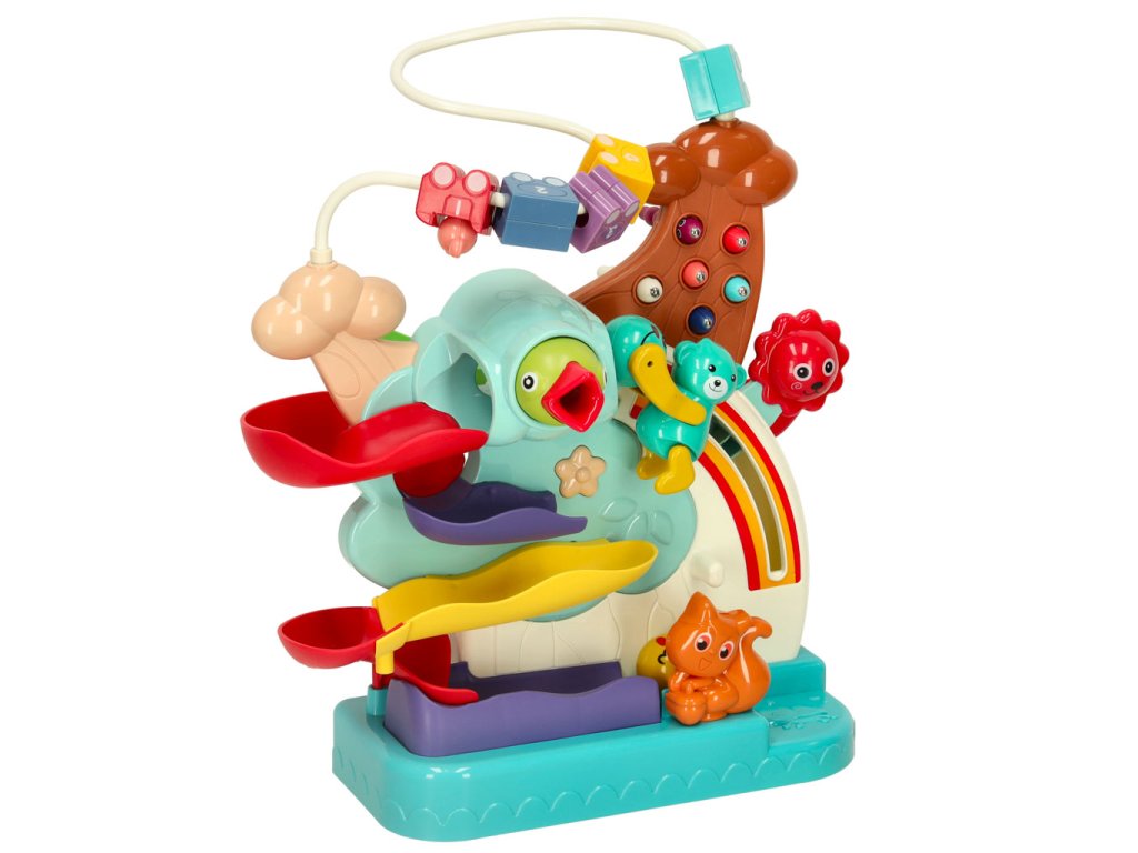 Hračka má ne jednu, ale až dvě dvě skladby, po kterých se mohou kutálet barevné míčky nebo autíčko. Další atrakcí jsou barevné vozy s čísly aby se dítě mohlo pohybovat a otáčet. Obsahuje také hra "krmení ptáků" spočívá ve sběru červů a krmení ptáků.