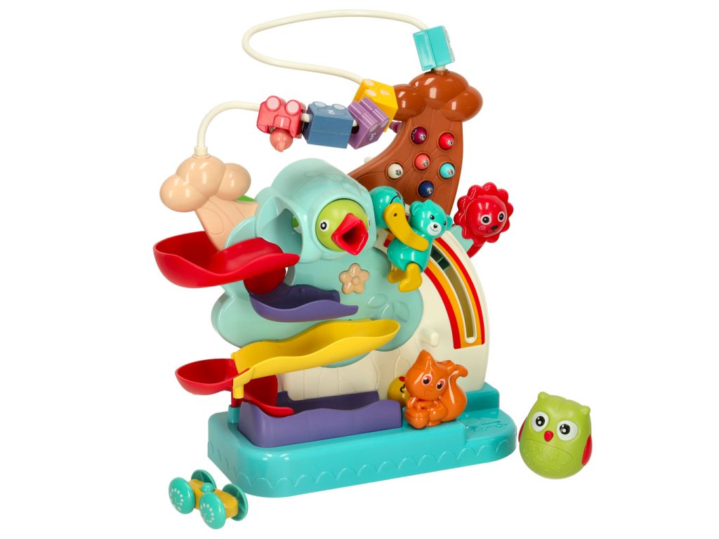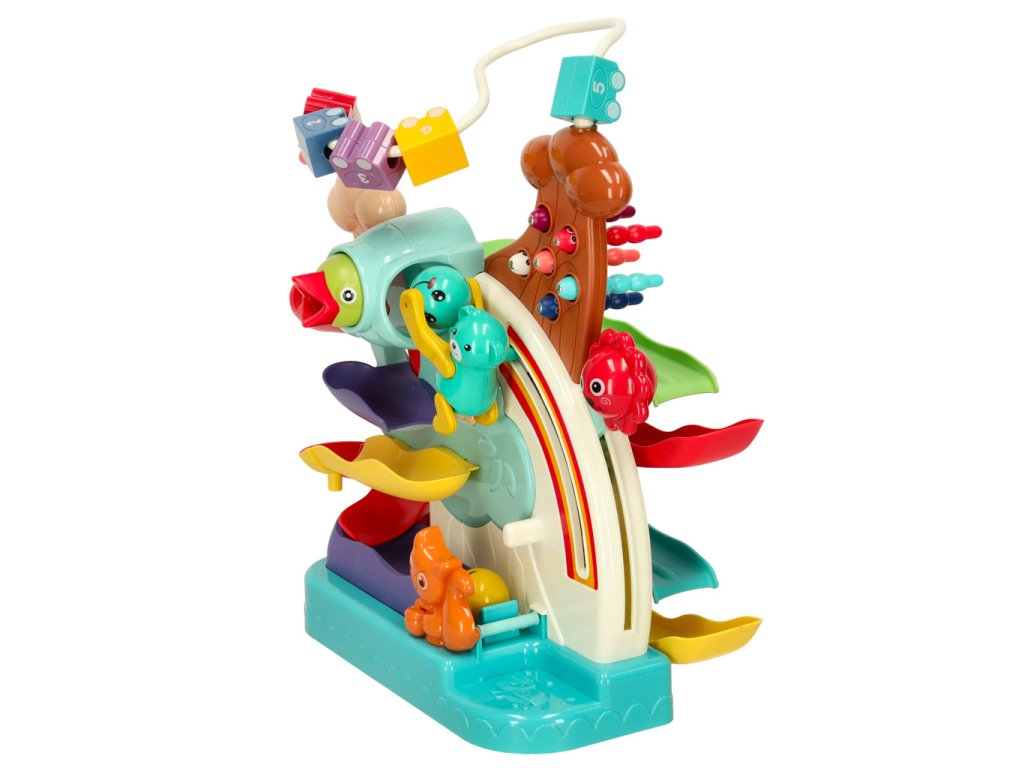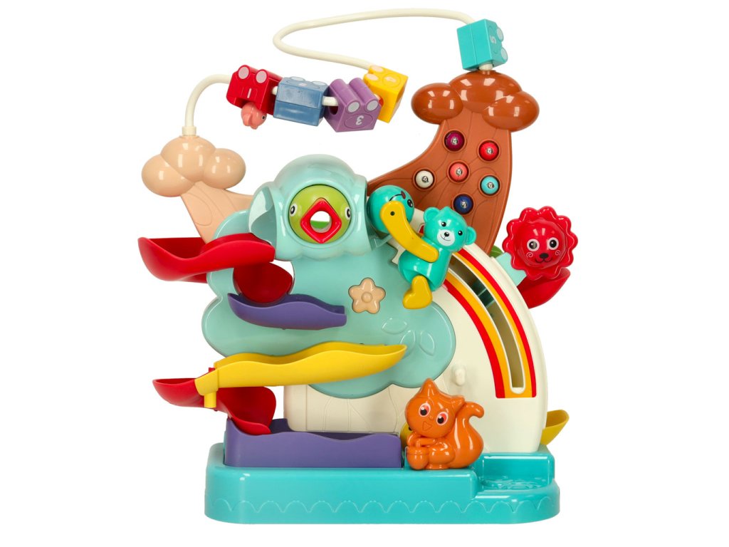 Padající míčky nejen přitahují pozornost dítěte, ale také povzbuzují jeho pozornost rozvoj vidění. Hračka navíc rozvíjí řadu dalších dovedností, jako např manuální zručnost, jemná motorika, uvažování o příčinách a následcích a pomáhá naučit se čísla. To jsou dovednosti, které jsou neocenitelné v každé fázi vývoje dítěte!