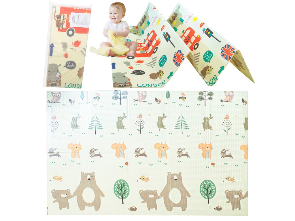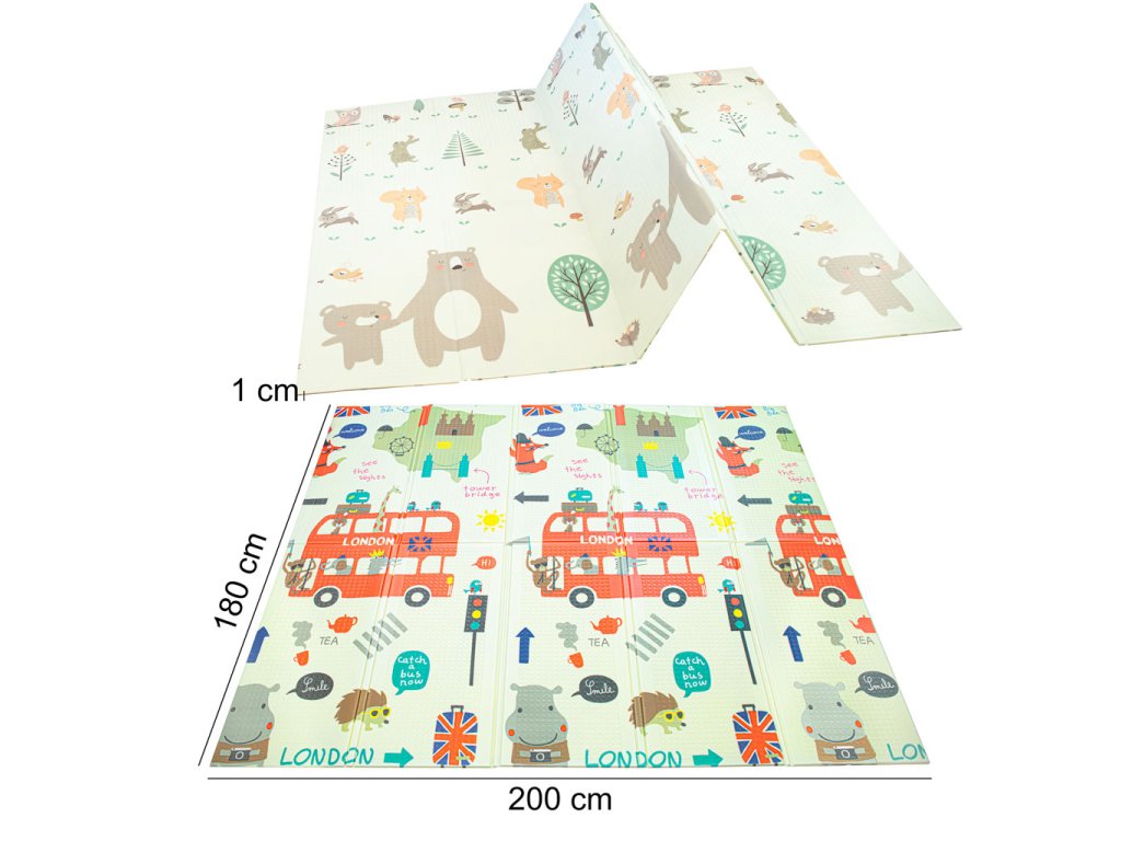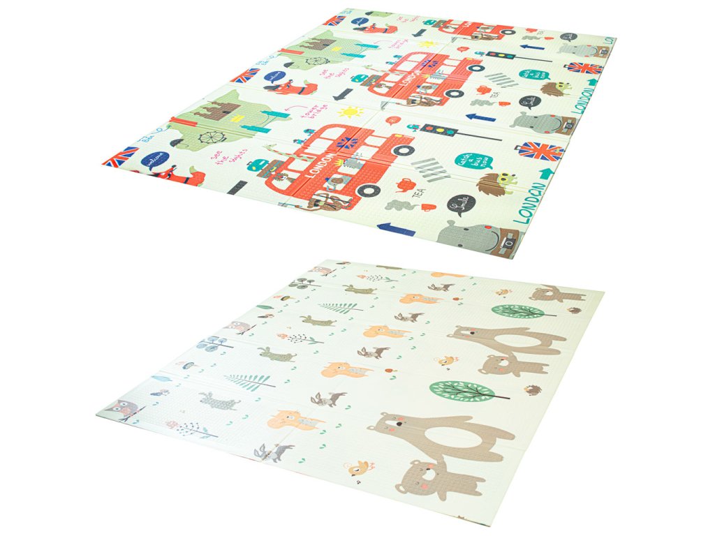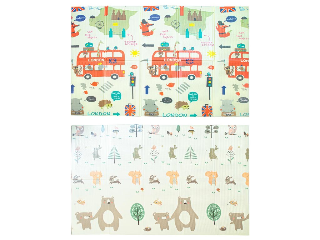 Vzdělávací oboustranná skládací pěnová podložka město/dřevo 200 x 180 cm x 0,8 cm