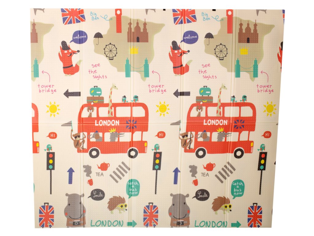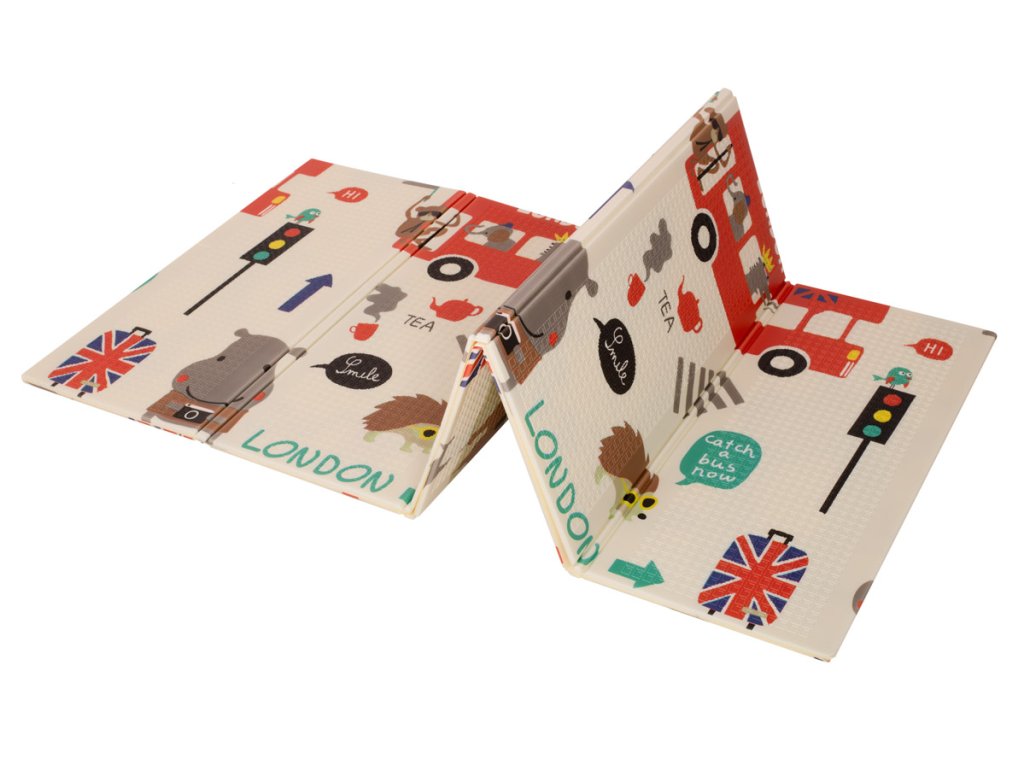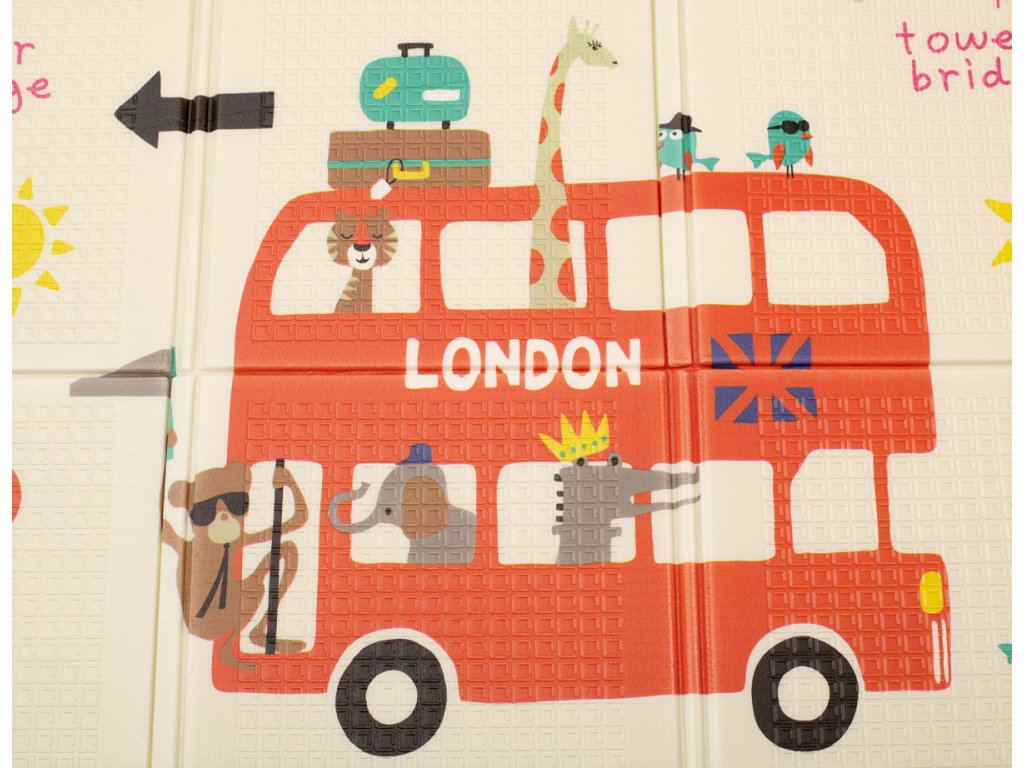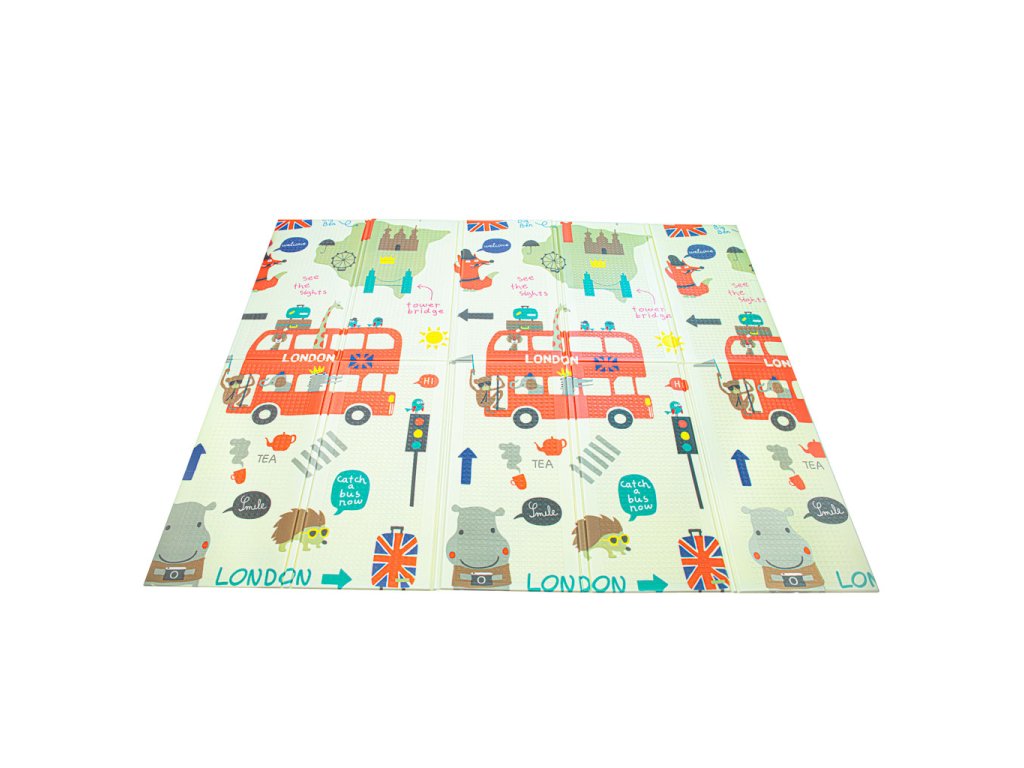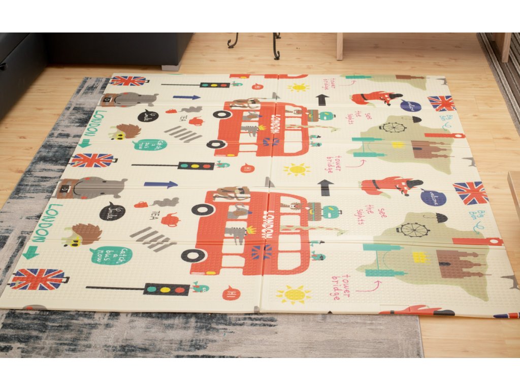 Vzdělávací oboustranná skládací pěnová podložka město/dřevo 200 x 180 cm x 0,8 cm