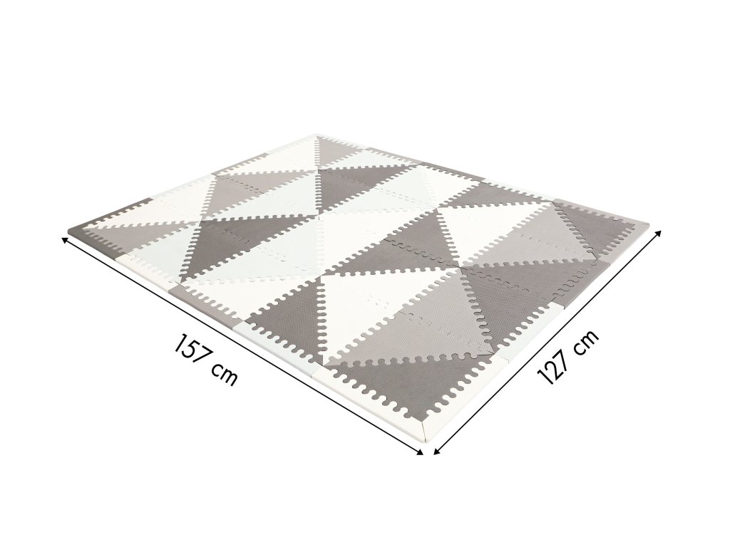 - Podložka se skládá z trojúhelníků, jejichž hrany mají speciální "zuby", které umožňují jejich libovolné spojování. Tloušťka podložky ( 1 cm ) poskytuje dostatečnou ochranu proti pádu a je příjemně měkká.