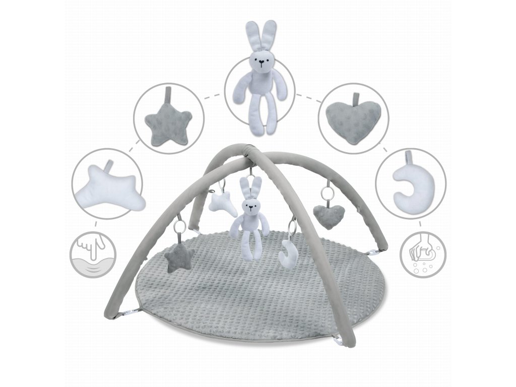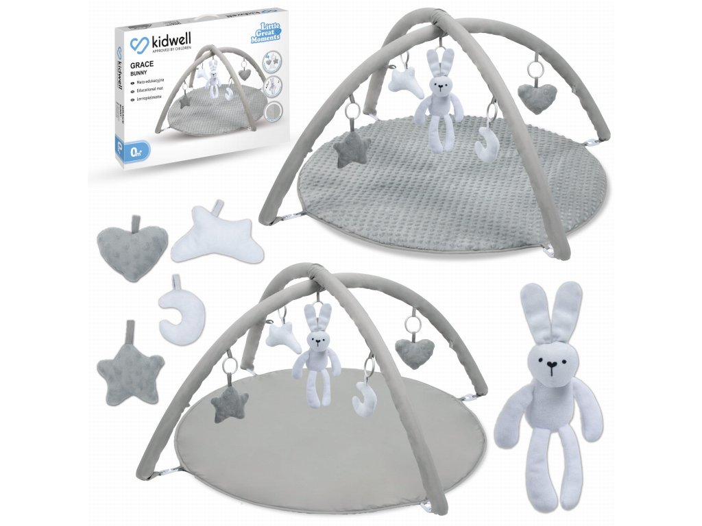 CHLUPATÁ A MĚKKÁ VZDĚLÁVACÍ PODLOŽKA KIDWELL GRACE BUNNYje to ideální prostor pro hraní dětí, které začínají objevovat svět. Podložka může vaše dítě provázet od prvních dnů života. Měkké plyšové hračky podněcují vaše miminko k pozorování, dotýkání a naslouchání. Plyšová zvířátka lze přizpůsobit individuálním potřebám vašeho miminka a umístit je na podložku na 9 různých míst. Rohožka Grace Bunny má jednoduchý skandinávský design, který se hodí do každého interiéru. VLASTNOSTI PODLOŽKY:
