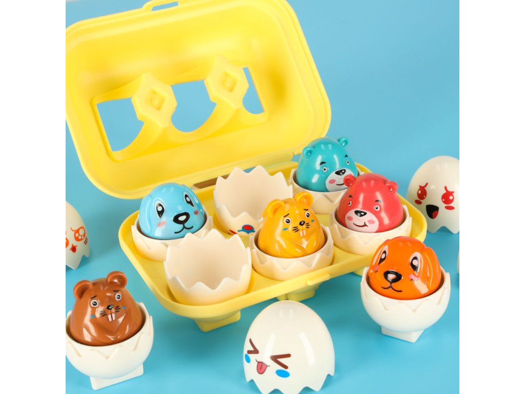 Objevte radost ze hry s vajíčky, která učí a baví zároveň! Naše vzdělávání skládačka třídič vejce je jedinečná vzdělávací hračka , která podporuje rozvoj kognitivních schopností vaše dítě od 18 měsíců. Barevná krabička obsahuje sada vzdělávacích vajec které je třeba sladit do dvojic - podle barvy, tvaru a vzoru skrytého na spodní straně. Ale to není všechno - uvnitř každého vajíčka čeká na nalezení roztomilé zvířátko, které dělá zábavu ještě zajímavější!