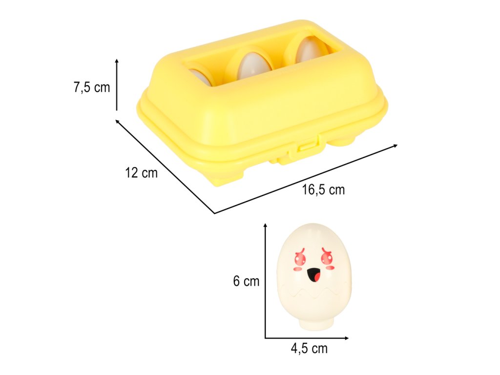 ● Materiál: bezpečný a odolný plast ● Věk dítěte: 18 měsíců+ ● Rozměry jednotlivých vajec: 4.5 cm (průměr) × 6 cm (výška) ● Rozměry balení: 17 cm × 12 cm × 8 cm● Balení je zdobeno barevnou kartonovou krabičkou, která je ideální jako dárek