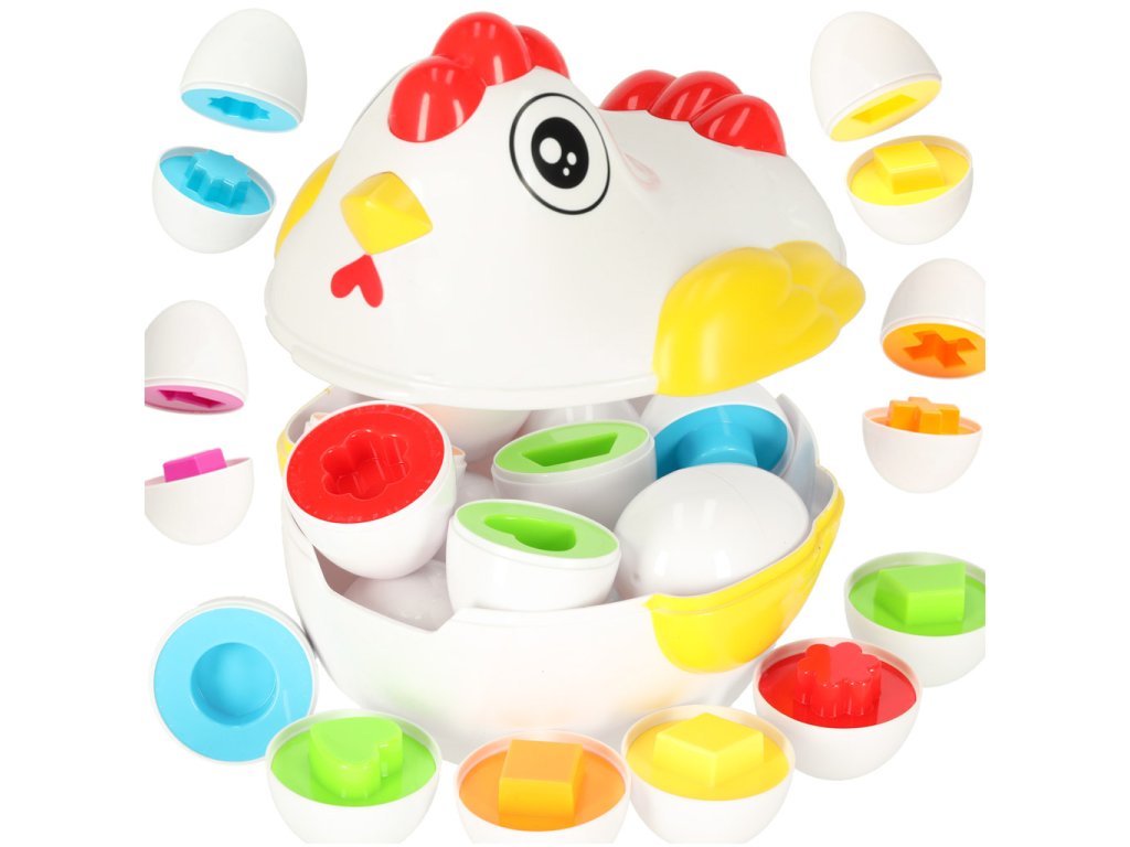 Zábavná slepička s překvapením - vzdělávací hračka s 12 vajíčky, která odpovídají tvarům!