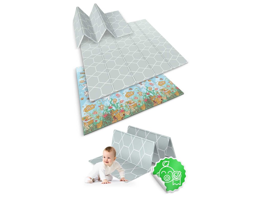 Tento jedinečný velké skládací rohož o200 x 180 cm, který má mnoho praktických využití. Poskytne vašemu dítěticomfort běhemhrát si a učit se lézt!