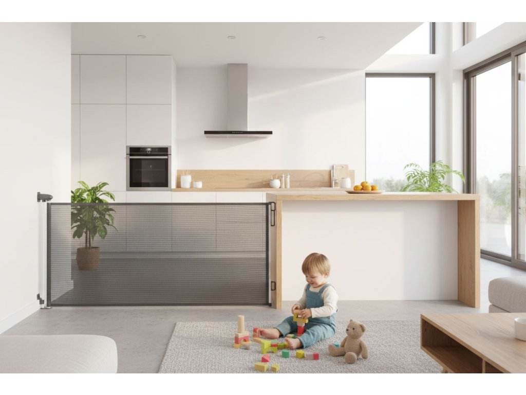Zatahovací bezpečnostní brána 160 cm - šedá ECOTOYS