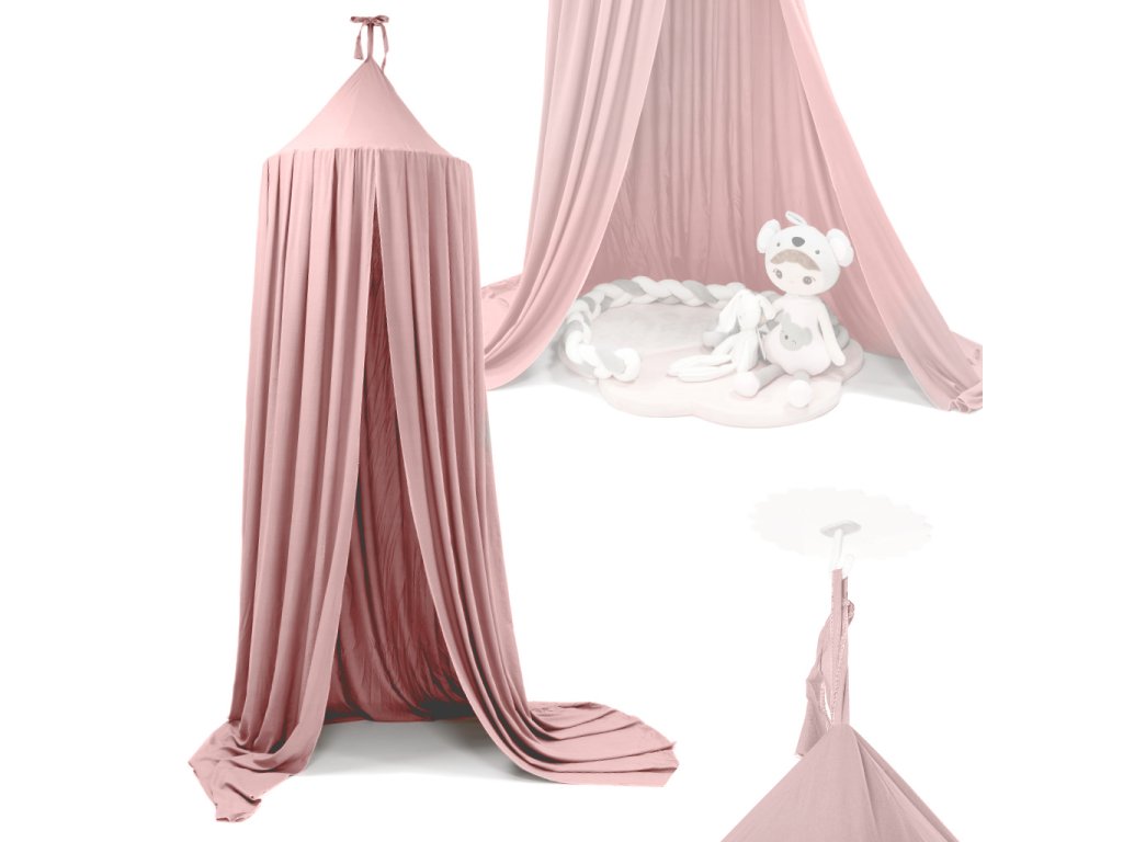 Závěsný baldachýn nad dětskou postýlkou světle růžový