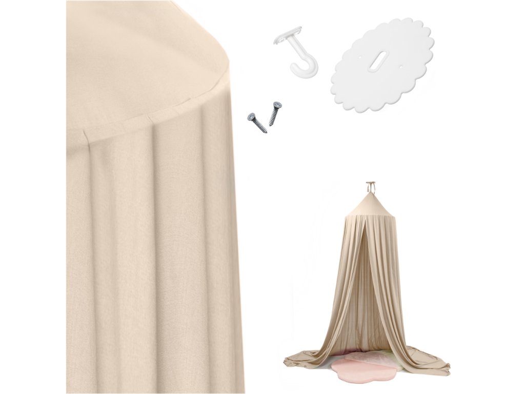 Jedinečný závěsný baldachýn nejenže vypadá velkolepě, ale také zajišťuje klidný spánek dítěte.Elegantní a funkční dekorativní prvek pokoje, který ukradne srdce dětem i rodičům.Baldachýn se snadno sestavuje - sada obsahuje všechny prvky potřebné k jeho upevnění.Zavěšený nad postýlkou vytvoří bezpečnou a útulnou atmosféru, která usnadní usínání. Ochrání vaše batole před vnějšími podněty a zatemní místnost během odpoledního spánku. baldachýn se bude skvěle hodit i jako stan. Bude útulným přístřeškem, kde najdou útočiště plyšoví kamarádi, oblíbená autíčka, panenky nebo figurky. Bude také ideálním místem pro odpočinek, zklidnění a společné čtení knihy.