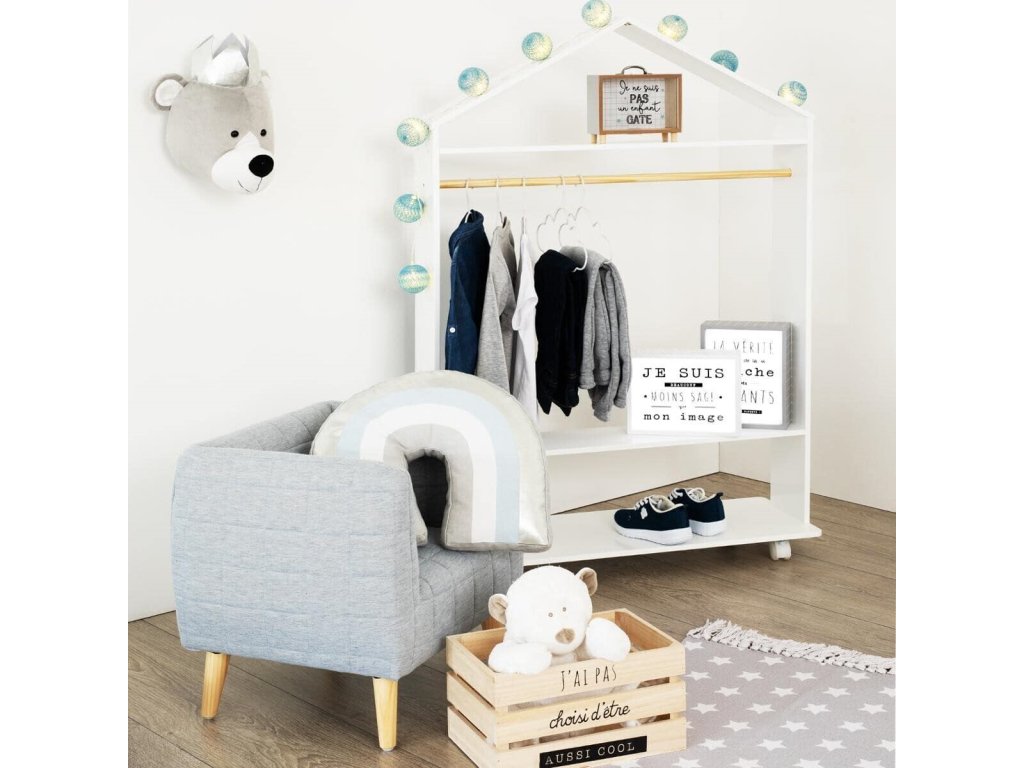Tato dětská skříň na kolečkách má vše: je lehká, díky kolečkům se s ní snadno manipuluje a má několik úložných prostorů. Police jsou ideální pro ukládání složeného oblečení, zatímco tyč na oblečení poskytuje dostatek prostoru pro zavěšení.