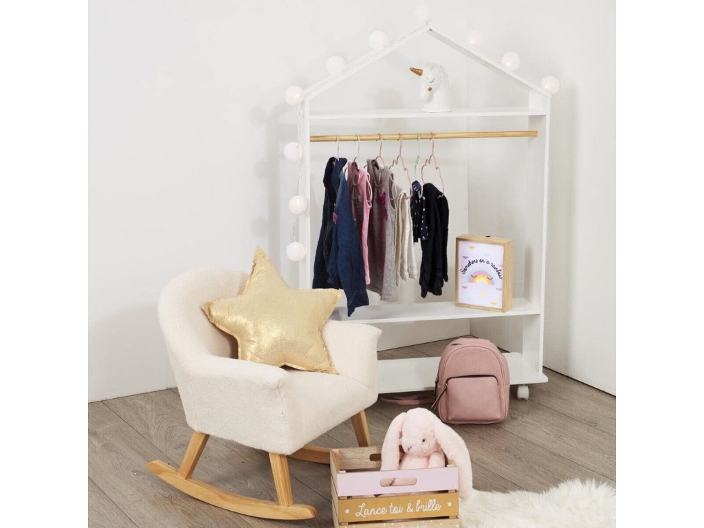 Stojan na oblečení se hodí do dívčího i chlapeckého pokoje. Věšák máposuvná kolatakže poskytujesnadná manipulace s ním.