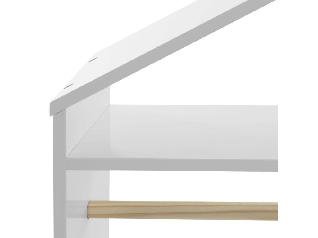 Díky hornímu panelu ve tvaru střechy vypadá tato skříň jako malý domek. Vnáší do výzdoby dětského pokoje útulný nádech a díky své jednobarevnosti se dá snadno kombinovat s dalším nábytkem.
